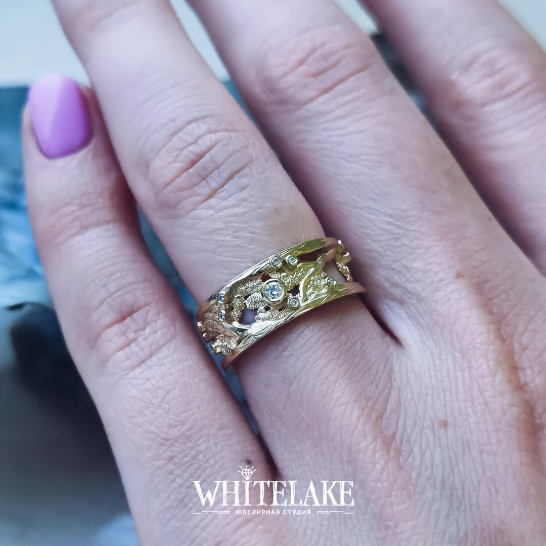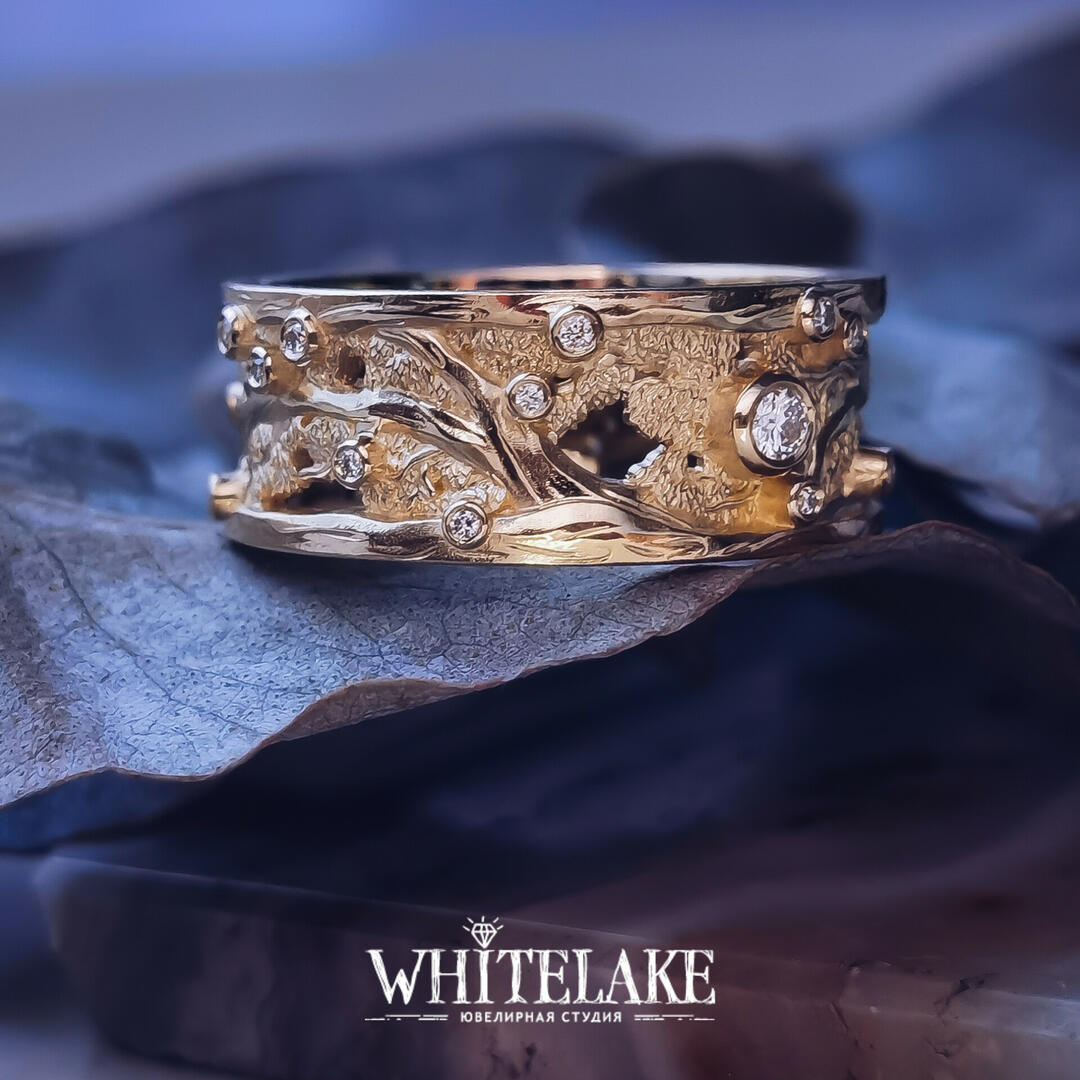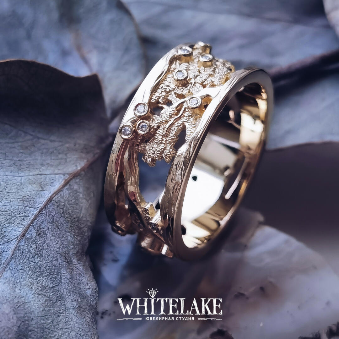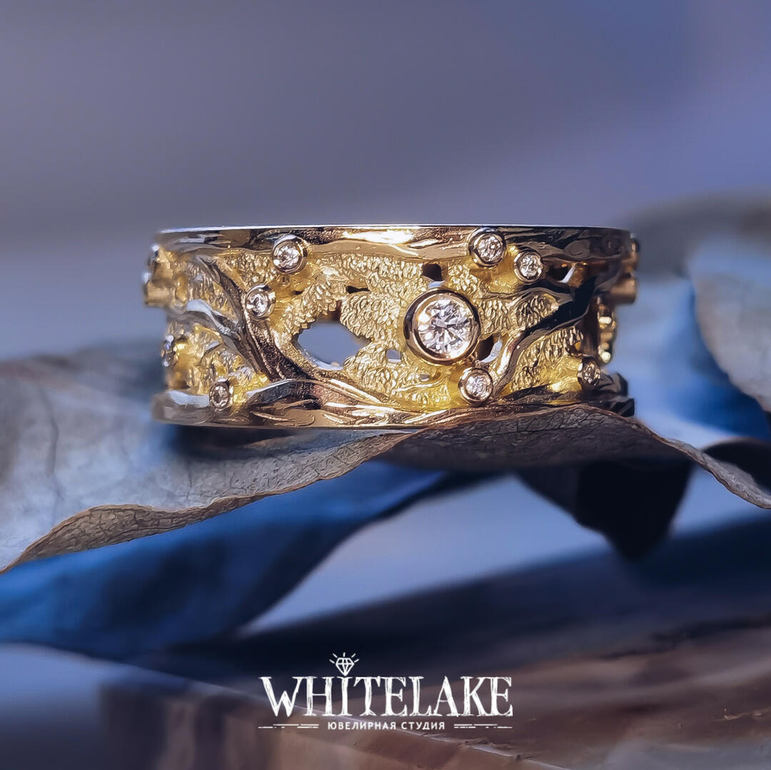 - выбрать вариант с чернением или без, а также с позолотой или без в нужных вам местах кольца