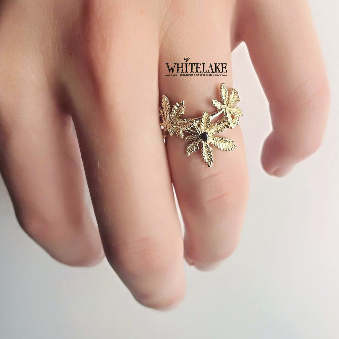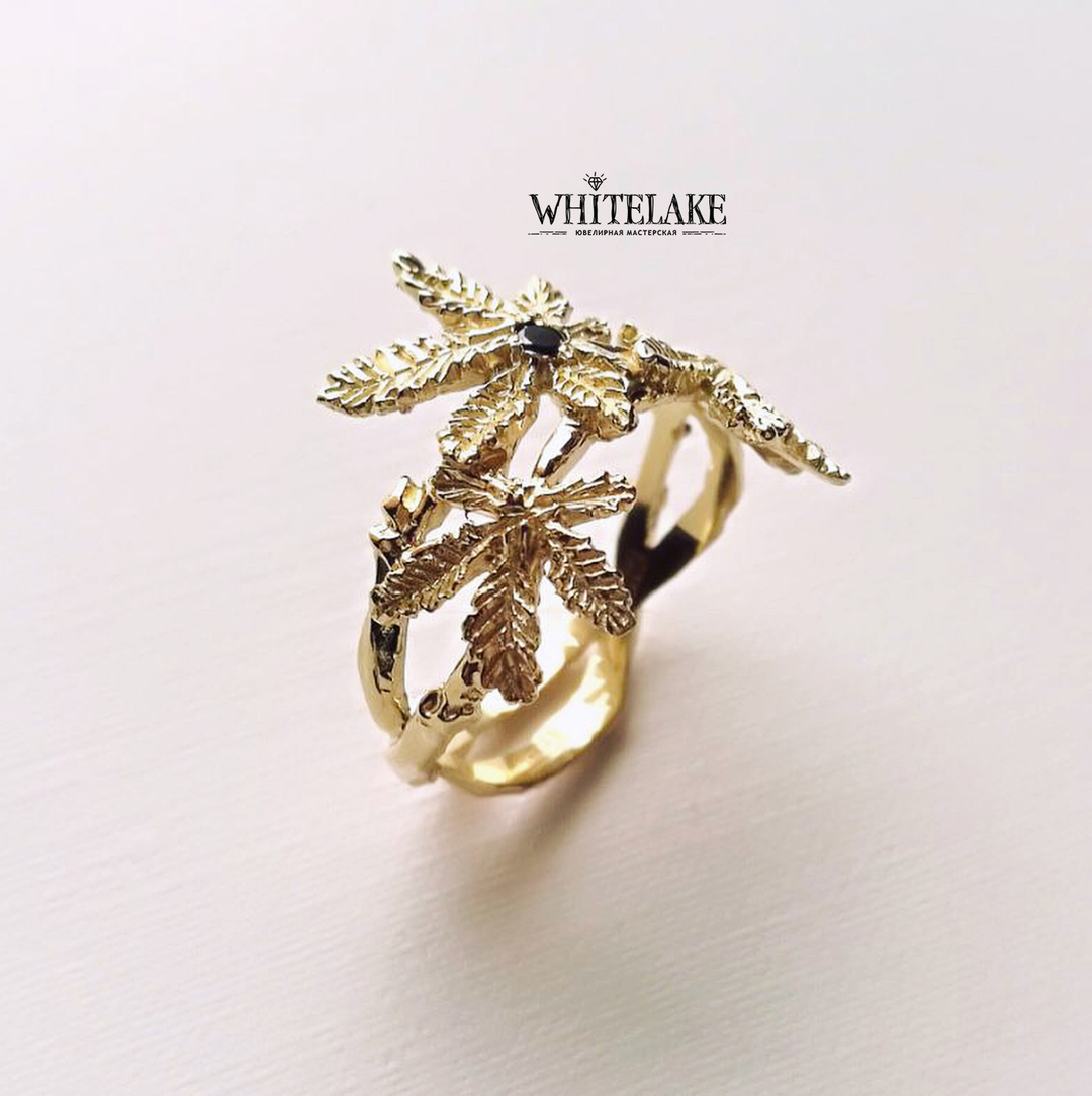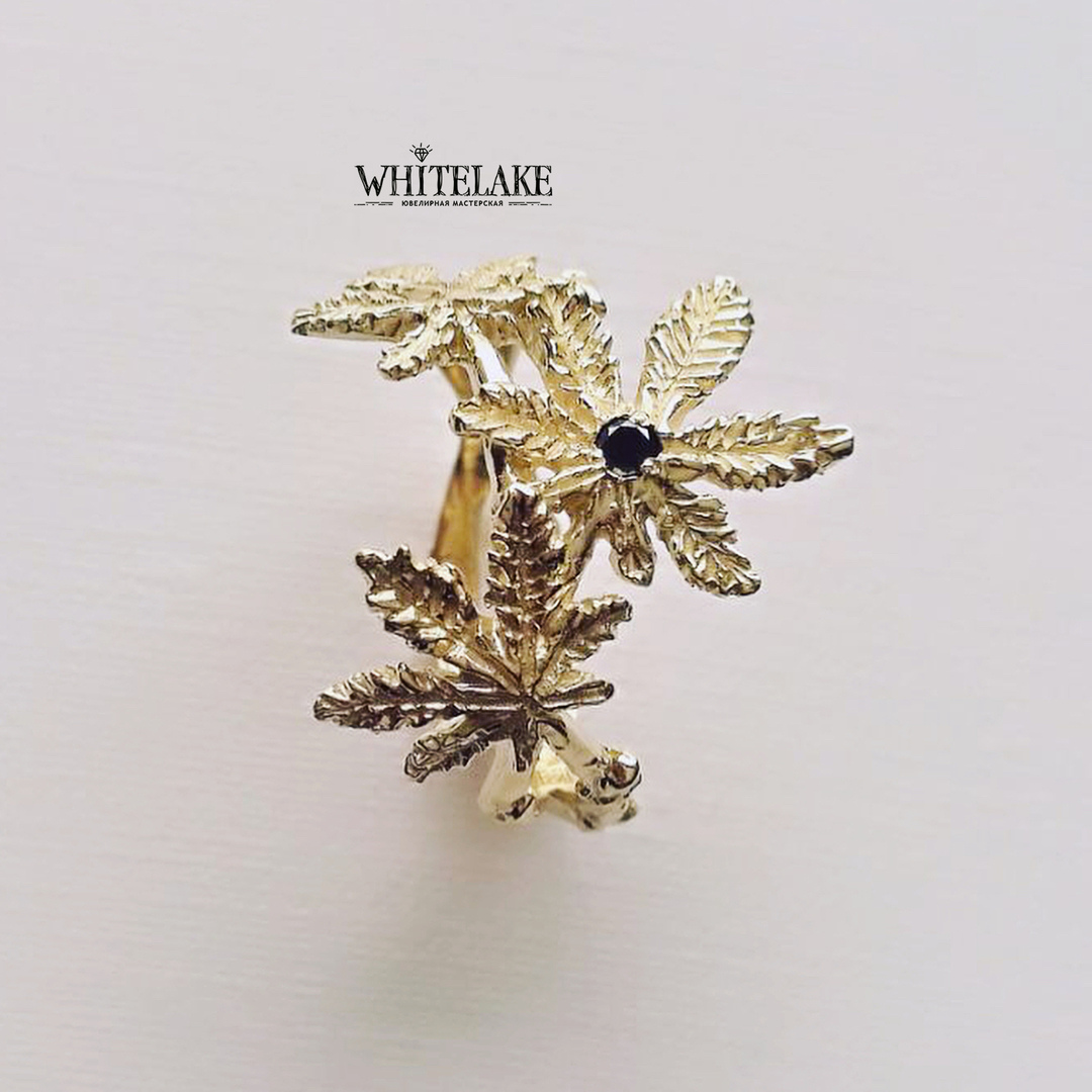 WHITELAKE Кольцо листья с чёрным бриллиантом Кольцо листья с чёрным бриллиантом на заказ по своим и нашим эскизам. Изготовление ювелирных украшений из золота и других металлов с доставкой по всей России. Ювелирная студия Whitelake: каталог и цены на сайте.