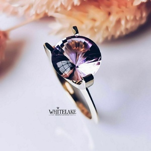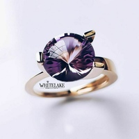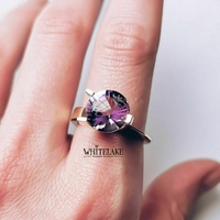 Уникальность этому кольцу придает сиреневый аметист, а вернее — его необычная огранка «Линза». Если рассматривать украшение сбоку, видно, что верхняя часть камня совершенно гладкая и формой напоминает линзу, знакомую нам еще из школьного курса физики.