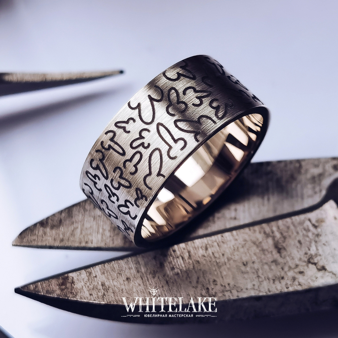 - выбрать вариант с чернением или без, а также с позолотой или без в нужных вам местах кольца