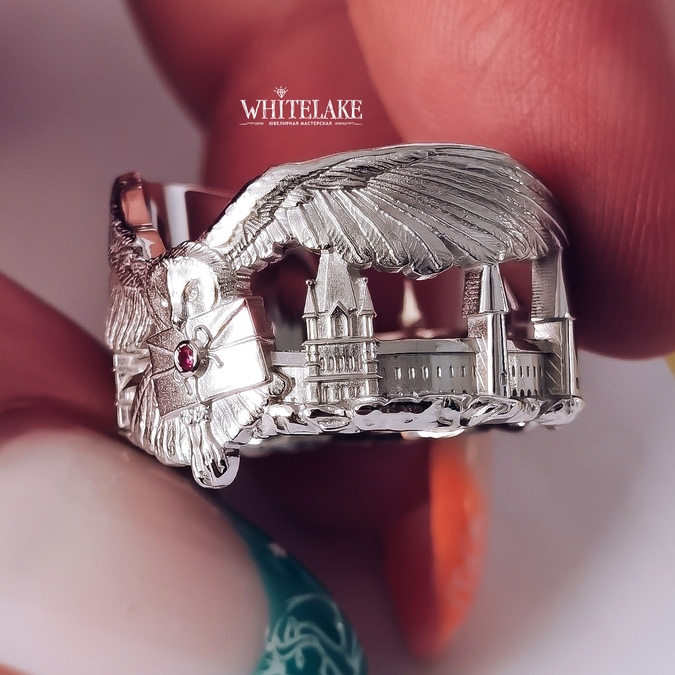 - выбрать вариант с чернением или без, а также с позолотой или без в нужных вам местах кольца