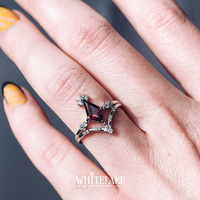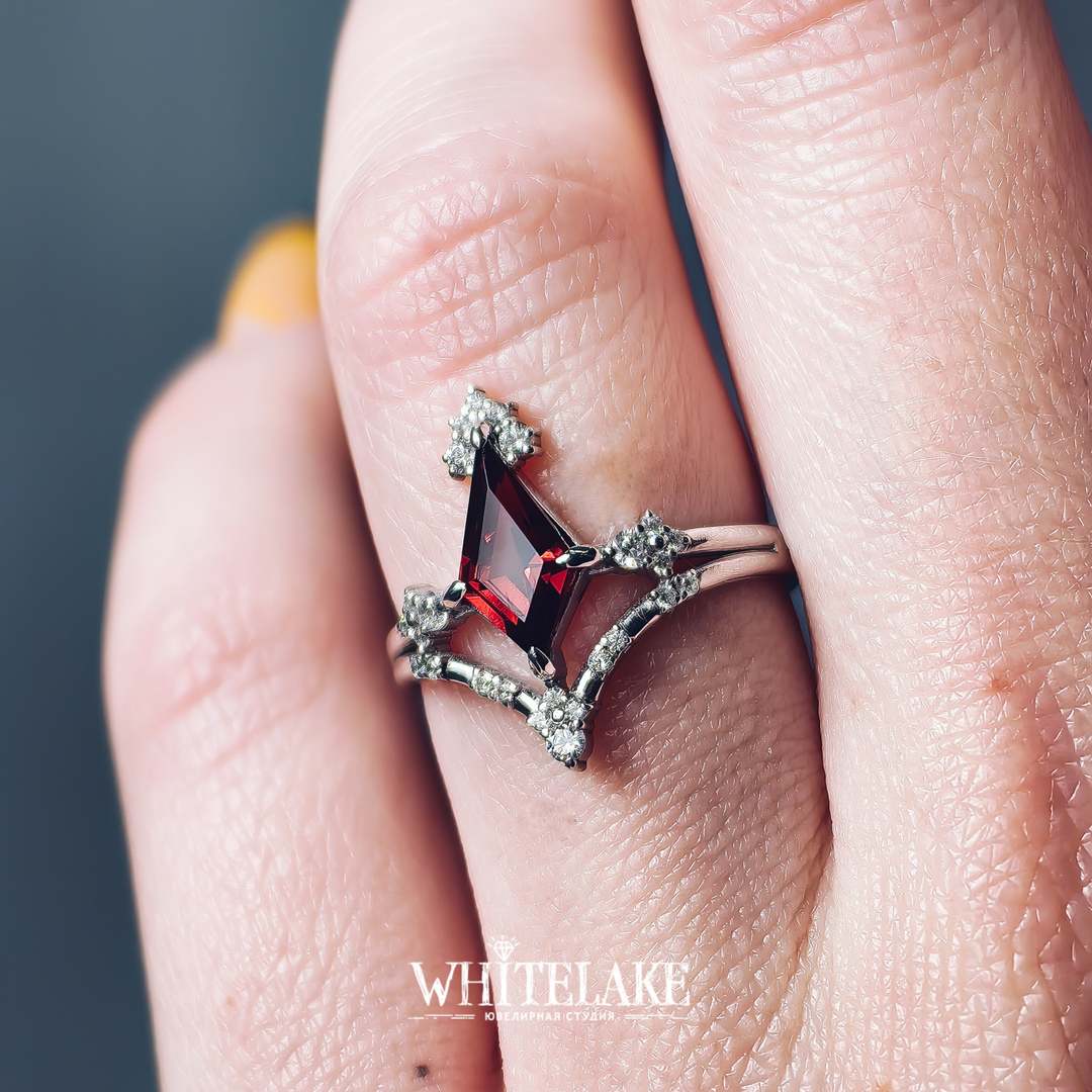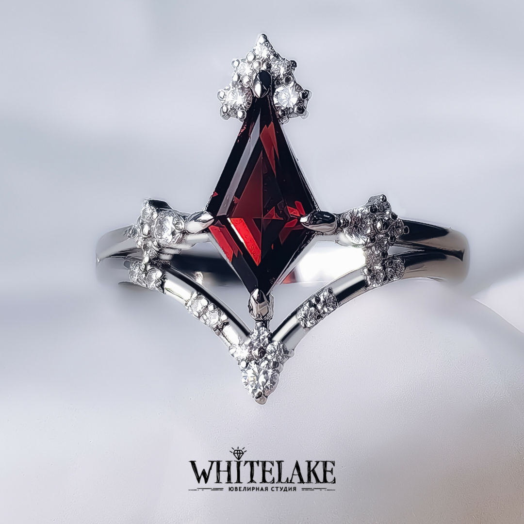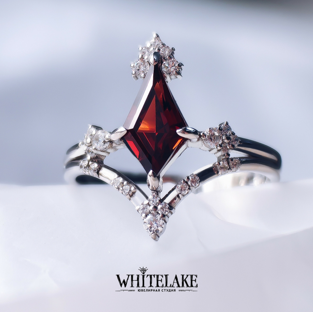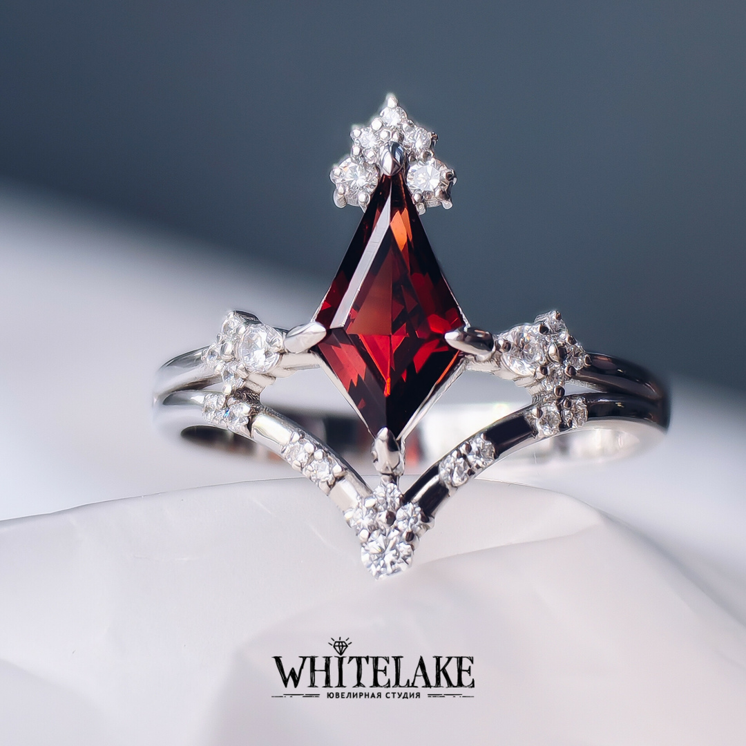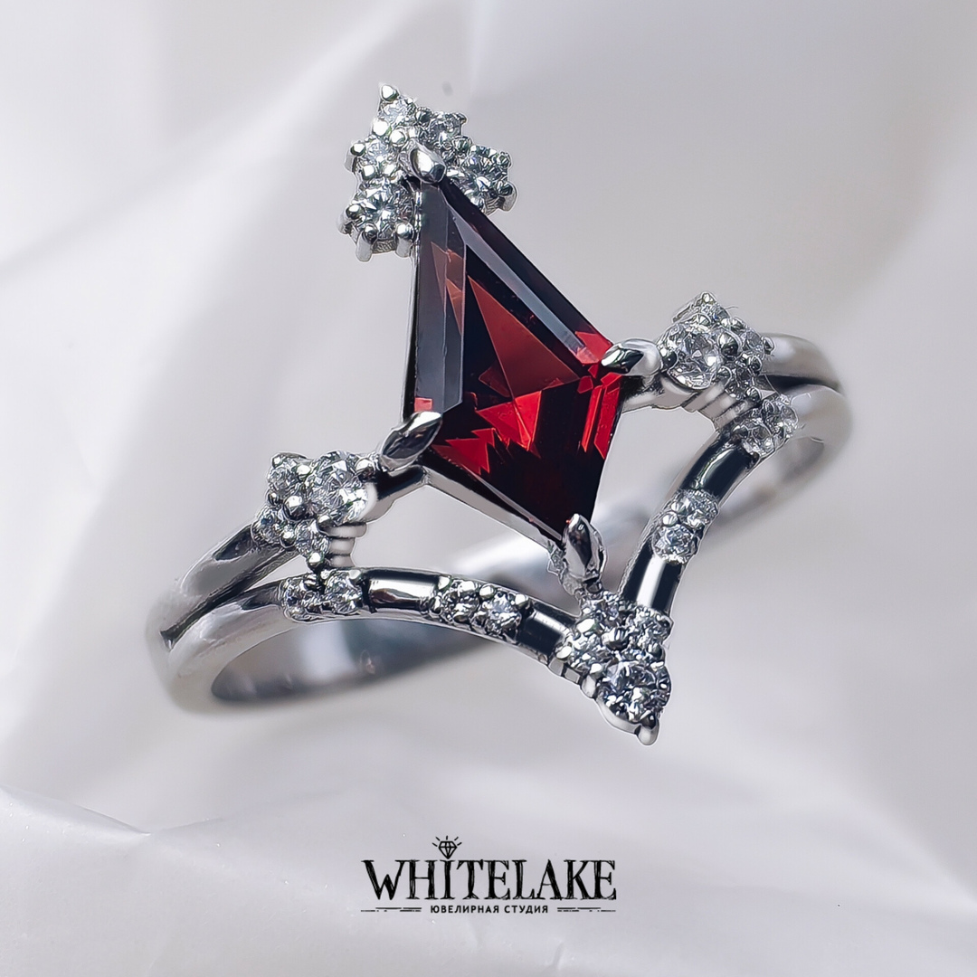 Необычное кольцо с гранатом огранки Ромб
