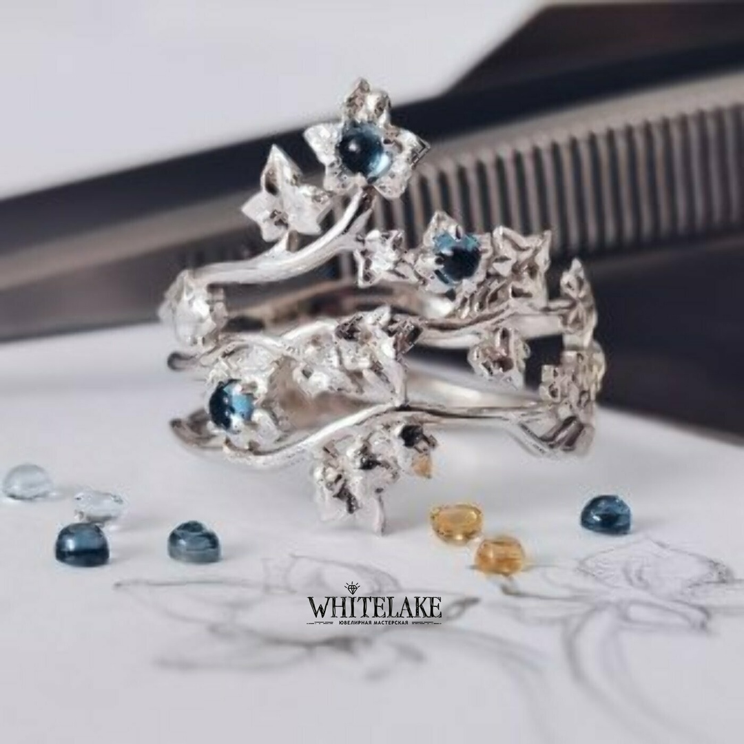 Это кольцо, как и все украшения в нашем каталоге, — полностью ручная работа. Мы можем повторить его для вас, сохранив такой же дизайн, какой вы видите на фото, или изменив его в соответствии с вашими пожеланиями. Подробно опишите нам ожидаемый результат или пришлите изображения будущего украшения, а наши художники и ювелиры воплотят идею в жизнь. Кольцо может быть изготовлено из серебра или золота любого оттенка, а также из платины.