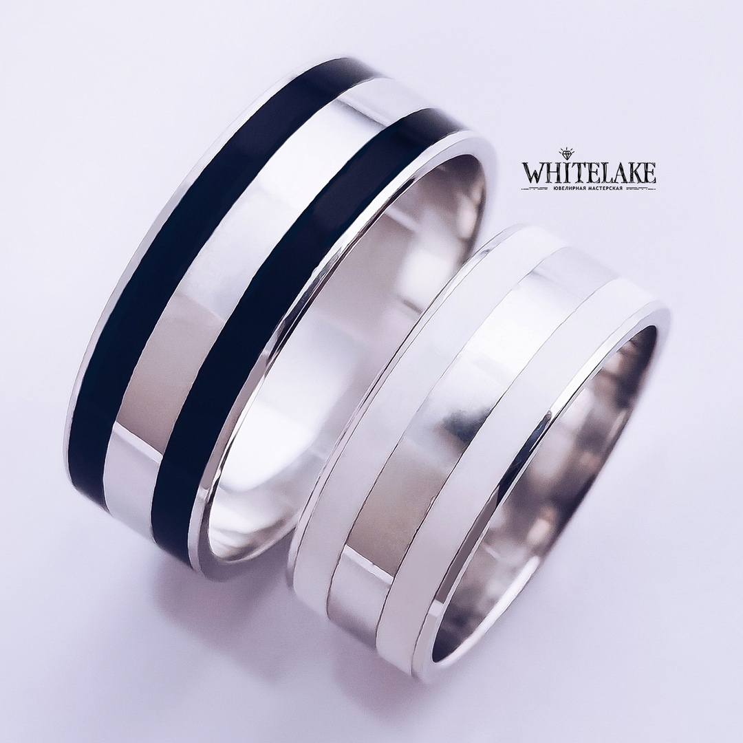 WHITELAKE Чёрно-белые обручальные кольца из золота с эмалью Чёрно-белые обручальные кольца из золота с эмалью - на заказ. Изготовление эксклюзивных колец в ювелирной студии Whitelake с доставкой по России. Создаем уникальные ювелирные украшения по своим и вашим эскизам из золота, платины и серебра с драгоценными и полудрагоценными камнями и гравировкой.