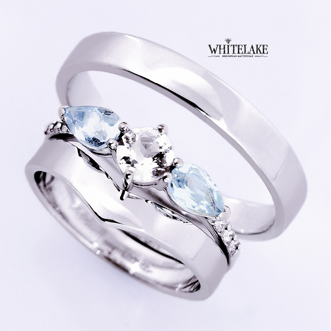 - Дизайнерские обручальные кольца из белого золота с топазами