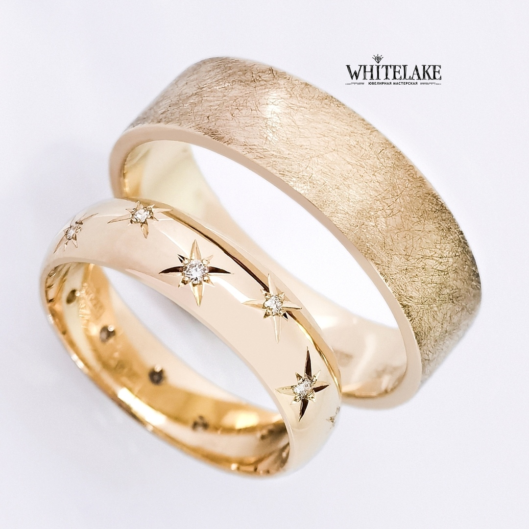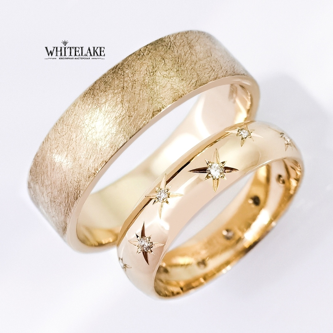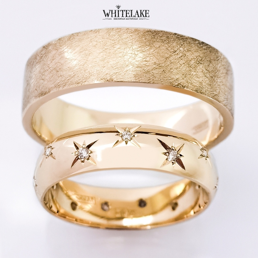 Креативные свадебные кольца из жёлтого золота с бриллиантами