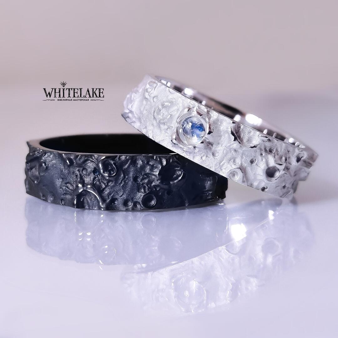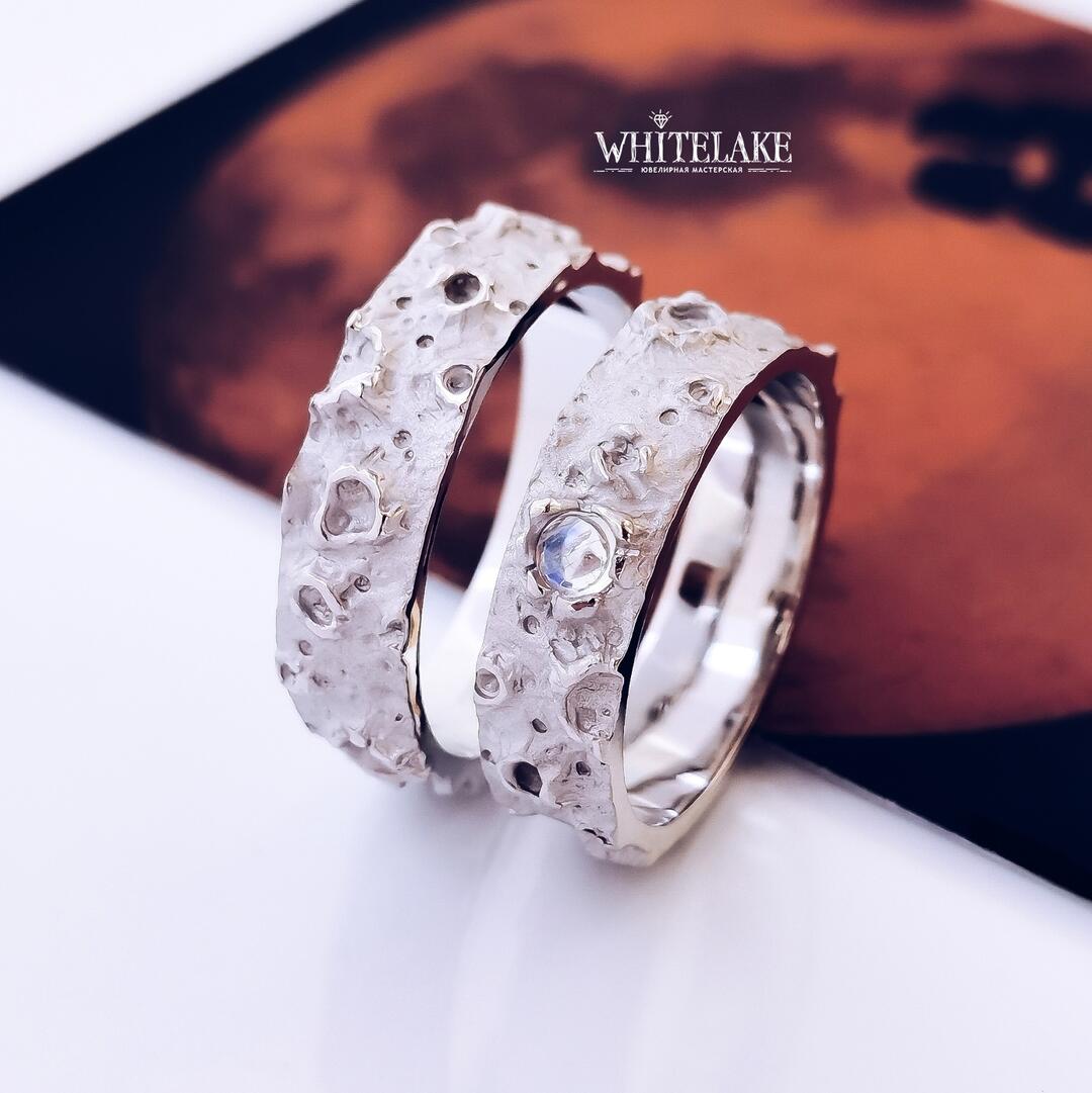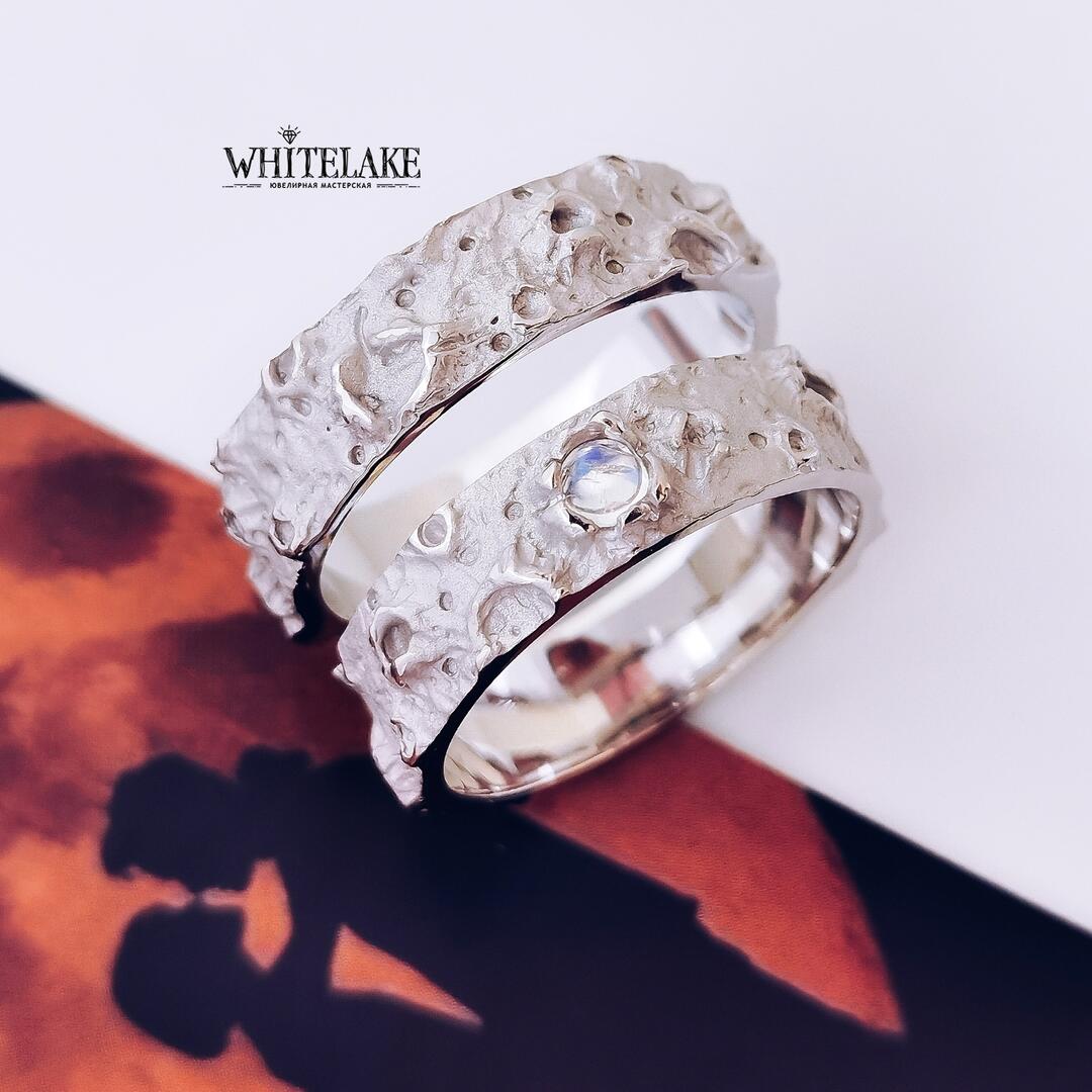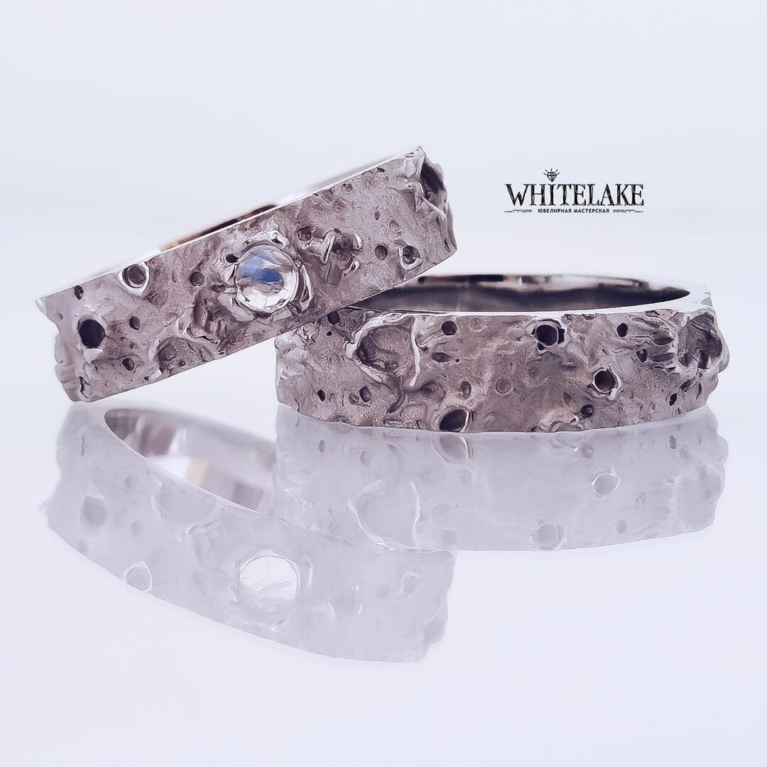 WHITELAKE Лунные обручальные кольца с лунным камнем Лунные обручальные кольца с лунным камнем - на заказ. Изготовление эксклюзивных колец в ювелирной студии Whitelake с доставкой по России. Создаем уникальные ювелирные украшения по своим и вашим эскизам из золота, платины и серебра с драгоценными и полудрагоценными камнями и гравировкой.