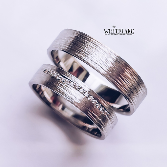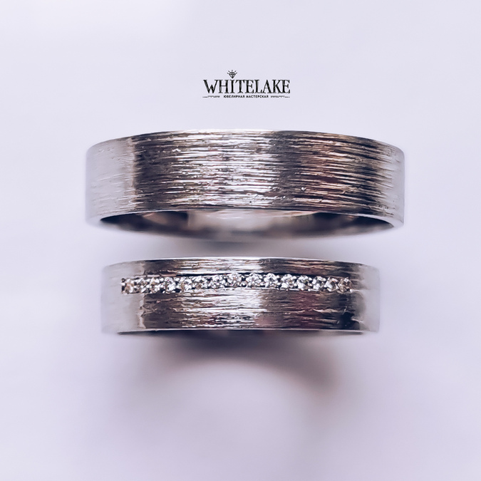Каждая пара колец изготавливается вручную на заказ за 2-4 недели под выбранные параметры: можно заменить ширину изделий, добавить камни в любое из них, сделать одно из колец или оба глянцевыми.