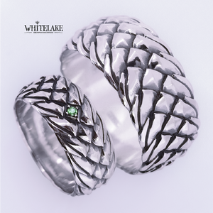 Что значит образ дракона для вас? Неуправляемую стихию, хаос и разрушение? Или высшую мудрость, созидательное начало мира? Как бы то ни было, красоту этого полумифического создания отрицать нельзя. Создавая эти кольца, мы представили, как могла бы выглядеть чешуя дракона: блестящая, гладкая, но очень прочная, похожая на кольчугу.