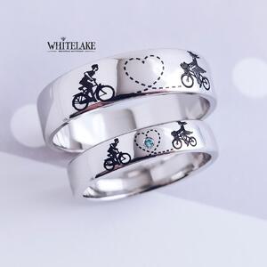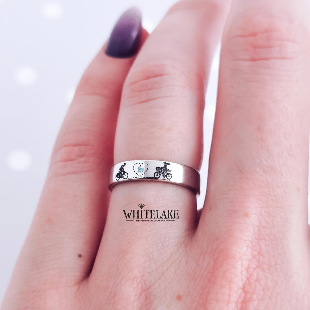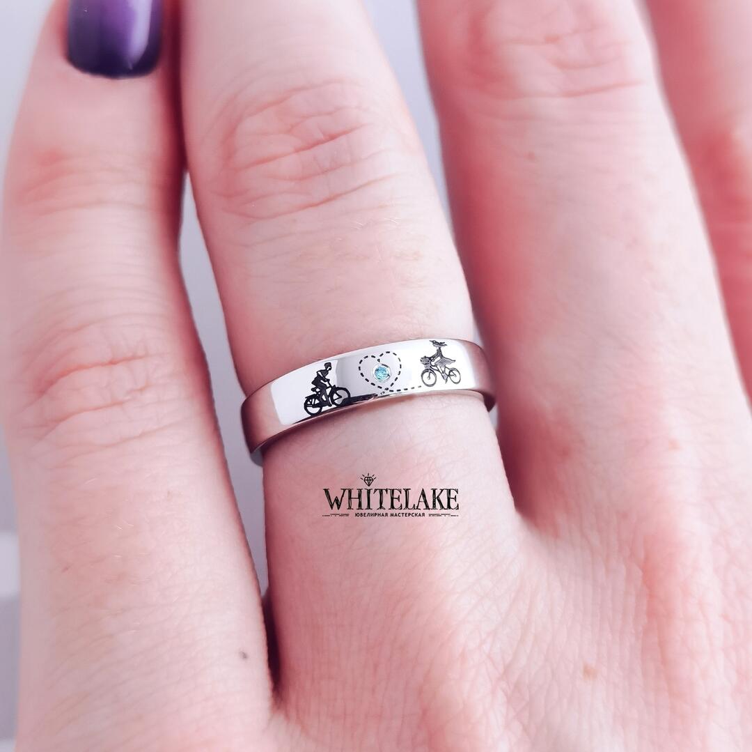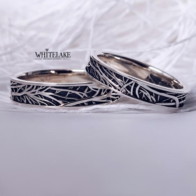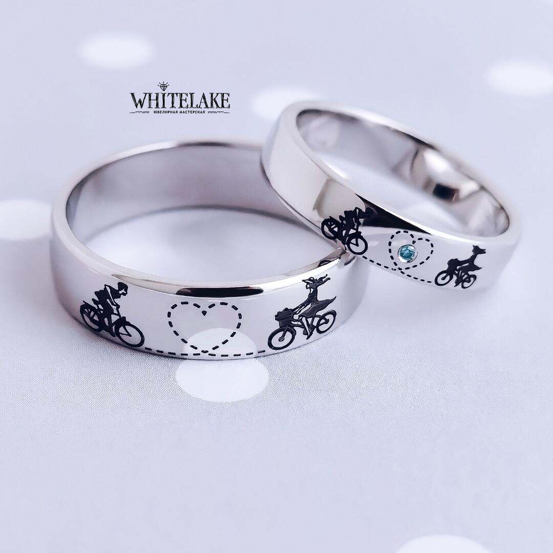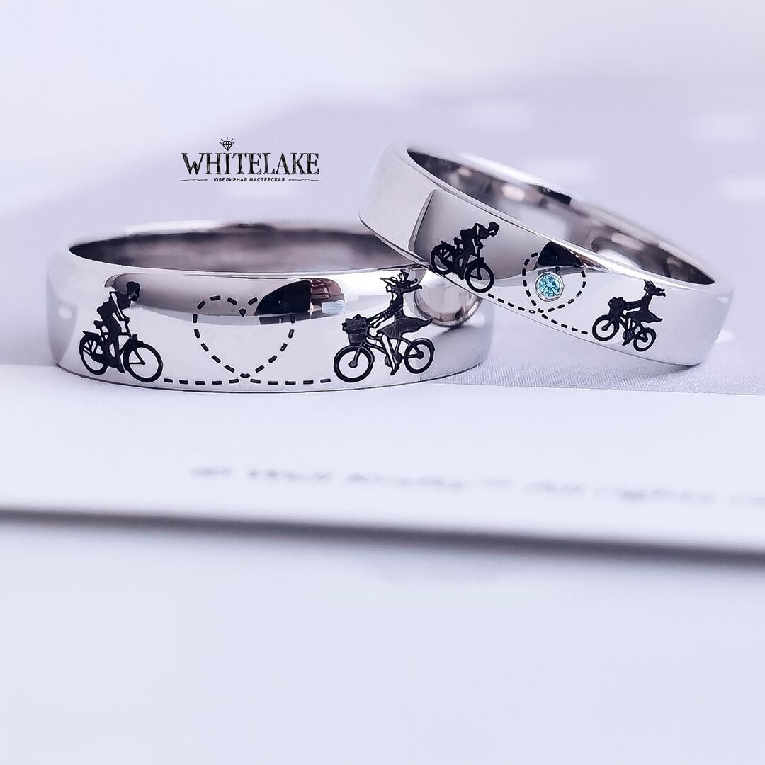 WHITELAKE Обручальные кольца из белого золота «Велосипеды» Обручальные кольца из белого золота «Велосипеды» - на заказ. Изготовление эксклюзивных колец в ювелирной студии Whitelake с доставкой по России. Создаем уникальные ювелирные украшения по своим и вашим эскизам из золота, платины и серебра с драгоценными и полудрагоценными камнями и гравировкой.