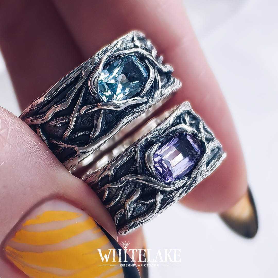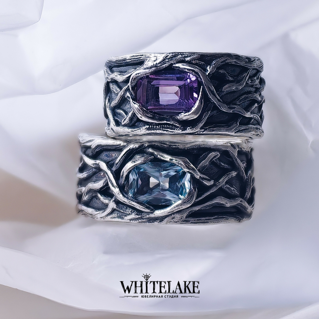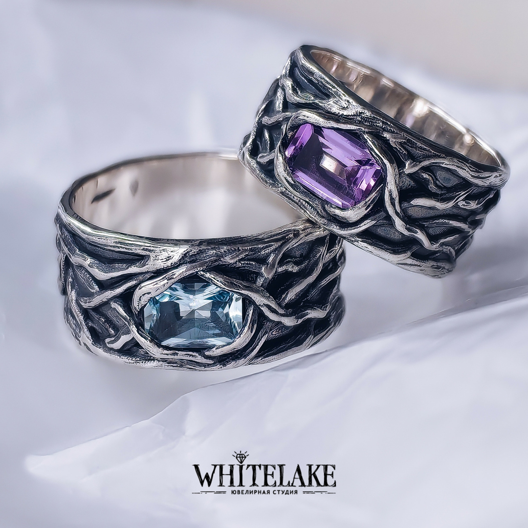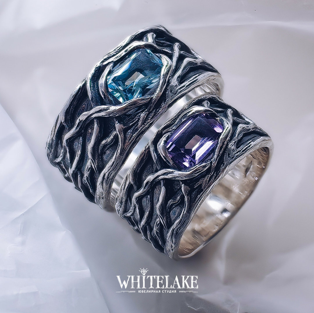 WHITELAKE Обручальные кольца «Корни деревьев» с камнями октагон Обручальные кольца «Корни деревьев» с камнями октагон - на заказ. Изготовление эксклюзивных колец в ювелирной студии Whitelake с доставкой по России. Создаем уникальные ювелирные украшения по своим и вашим эскизам из золота, платины и серебра с драгоценными и полудрагоценными камнями и гравировкой.