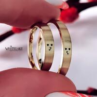 На этих обручальных кольцах выгравированы смайлики, которые смотрят друг на друга влюбленными глазами и посылают воздушные поцелуйчики. Нам кажется, что это просто милота 85 уровня. Да, необычно. Да, не по-взрослому. Но какая разница, что подумают другие, если это делает счастливыми вас!