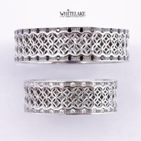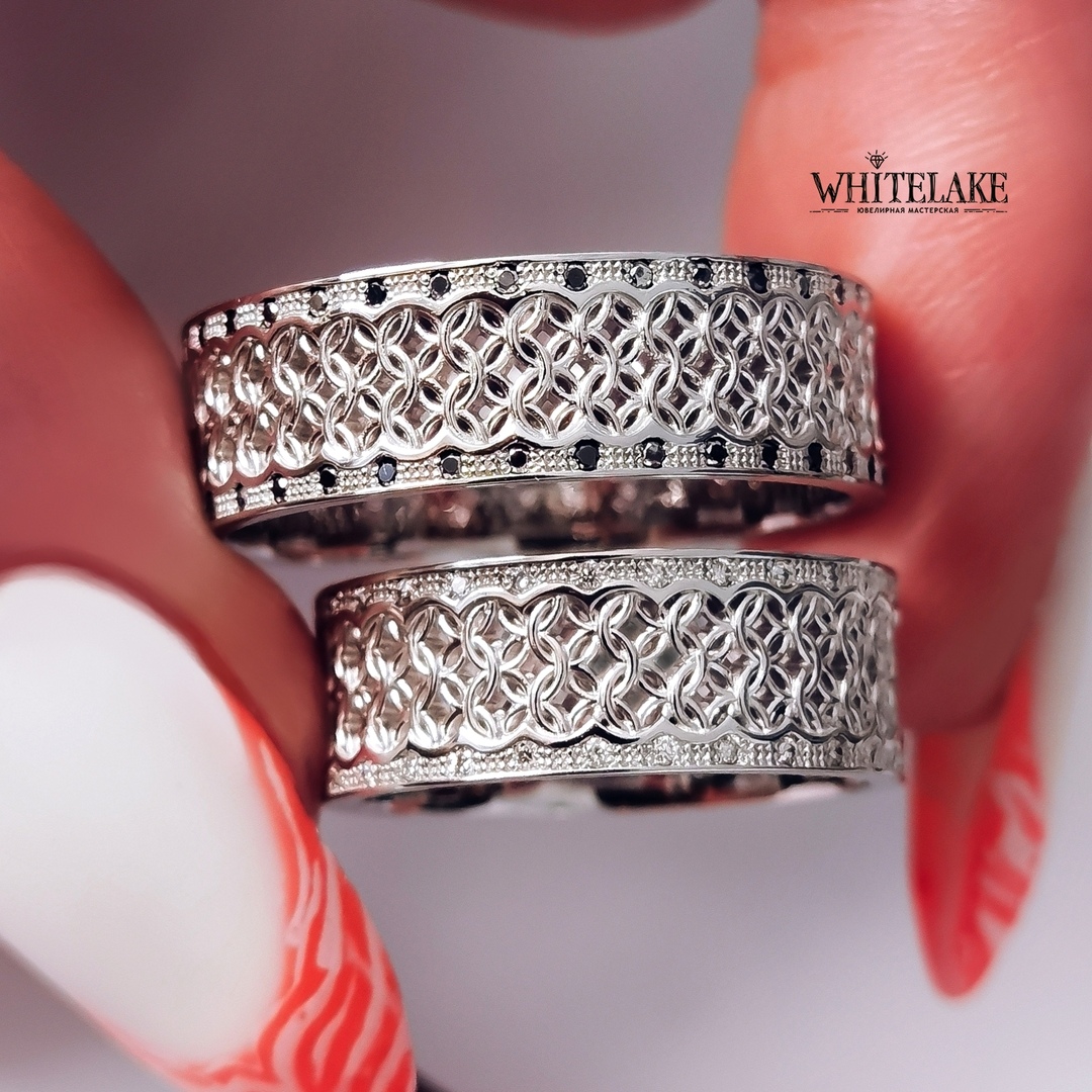 Изделия, которые вы видите на фото, — на 100% ручная работа. Мы можем повторить их для вас под нужные размеры. Каждый клиент сам принимает решение о том, какие материалы будут использоваться при изготовлении его украшения. Вы сами выберете металл: белое, желтое, розовое золото, серебро, платина. Сами решите, какой именно узор хотите видеть в основе дизайна, и, если он будет отличаться от примера, просто пришлете нам его изображение.