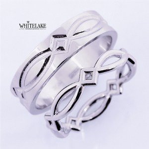 - Парные обручальные кольца из белого золота «Бесконечность»