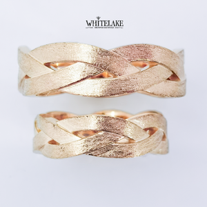 Обручальные кольца, выполненные в форме переплетенных нитей, не только оригинальны и необычны, но и создают прекрасные ассоциации: о бесконечной любви, о тесном сплетении одной души с другой, о том, что вместе с близким человеком ты становишься сильнее и лучше. Особую изюминку кольцам придает фактура их поверхности — она словно исцарапанная, как лед. Невероятно красивые, утонченные украшения, идеально подходящие к прекрасному поводу надеть их, чтобы больше не снимать.