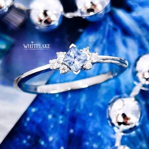 - Кольцо для предложения с голубым сапфиром Принцесса
