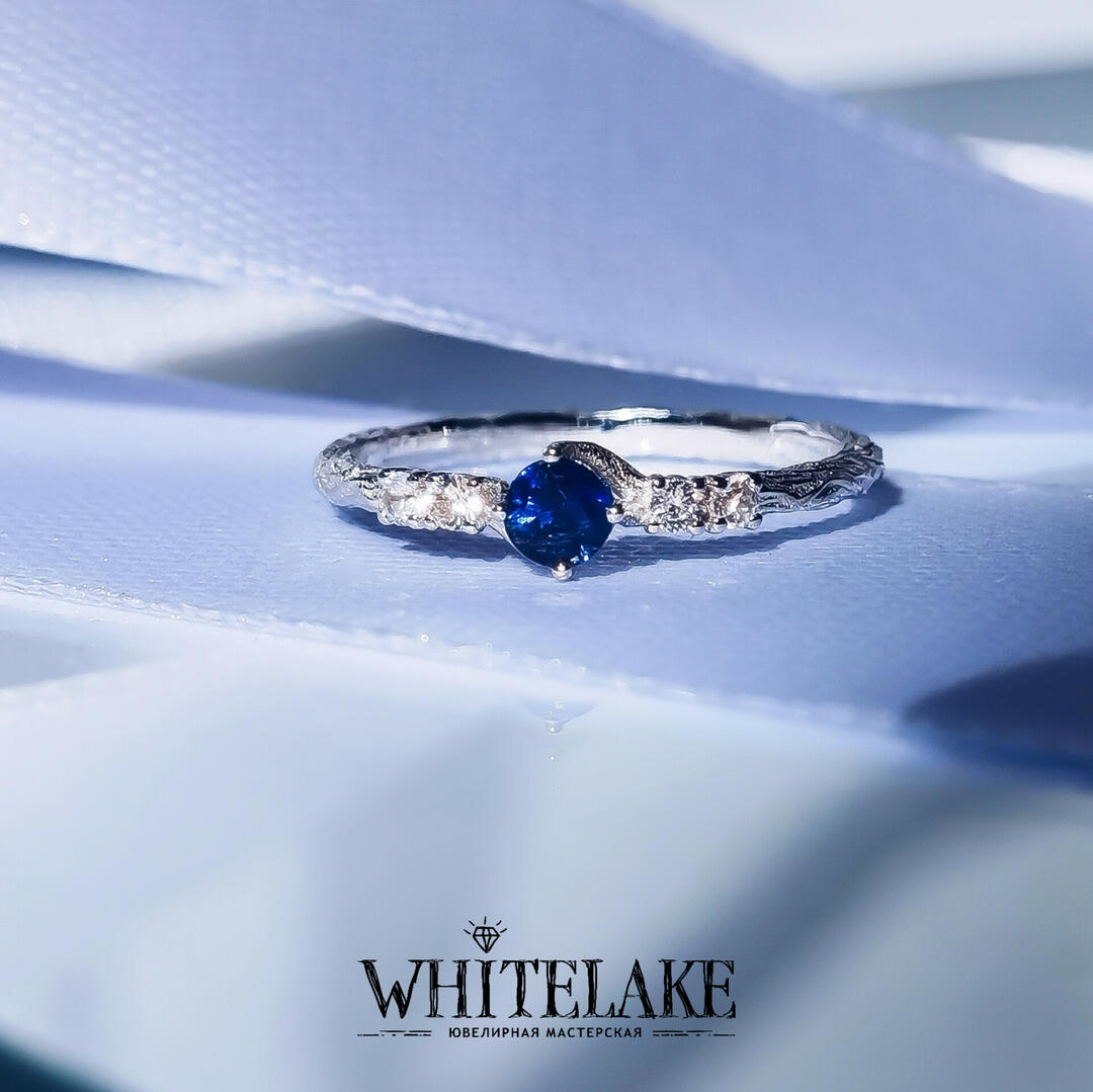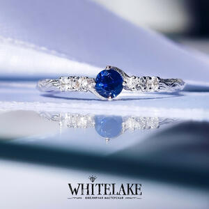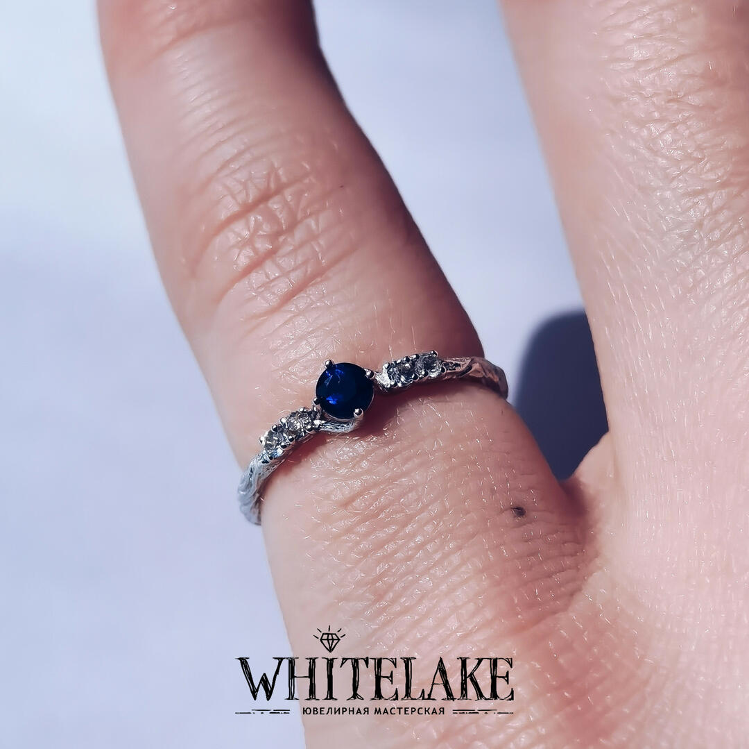 - Кольцо для предложения с синим сапфиром «Веточка»