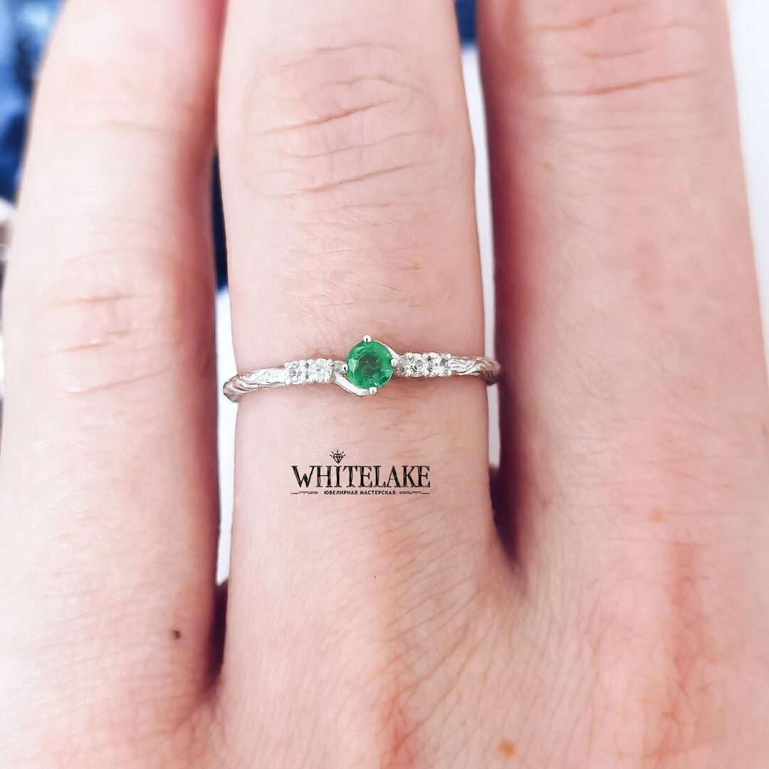 - Кольцо для предложения «Веточка» с изумрудом
