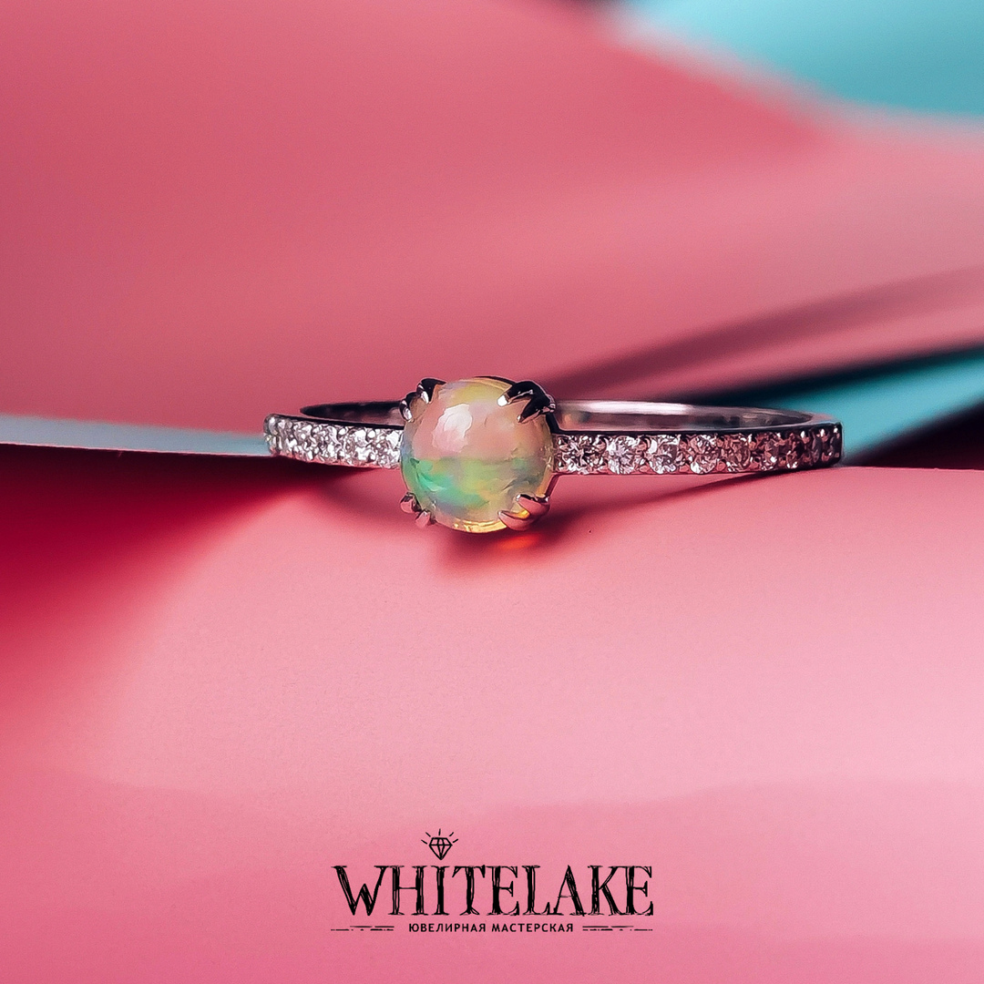 WHITELAKE Кольцо на помолвку с опалом и бриллиантами Кольцо на помолвку с опалом и бриллиантами на заказ с доставкой по России. Изготовление уникальных колец для помолвки из золота, серебра и платины с бриллиантами и другими драгоценными камнями. Ювелирная студия Whitelake. Посмотрите каталог украшений на сайте.