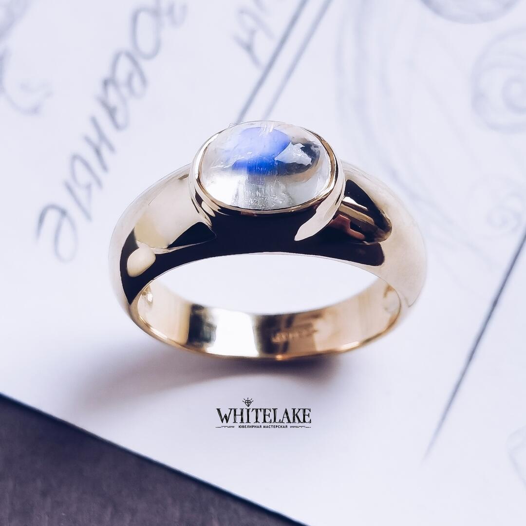 - Кольцо на помолвку в жёлтом золоте с лунным камнем