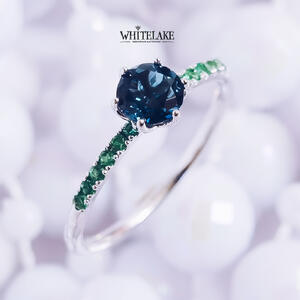 Красивое помолвочное кольцо с топазом и изумрудами