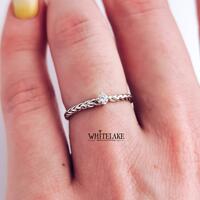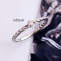 Его главная особенность состоит в том, что это не просто тонкий и гладкий ободок из золота с бриллиантом-верхушкой. Основа кольца напоминает косу или пшеничный колосок: несколько золотых «прядей» переплетаются между собой, создавая узор. Благодаря этому решению кольцо выглядит еще женственнее, изящнее и гармонично смотрится на женской руке.