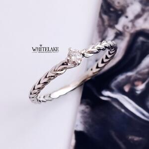 При этом и от классического бриллианта мы не отказались. Для этого украшения использовали аккуратный камушек диаметром 3 мм, весом ~0.08 карата. В результате получилось не слишком сложное, но уточненное, красивое и нежное кольцо, не лишенное оригинальности и совершенно особенного очарования.