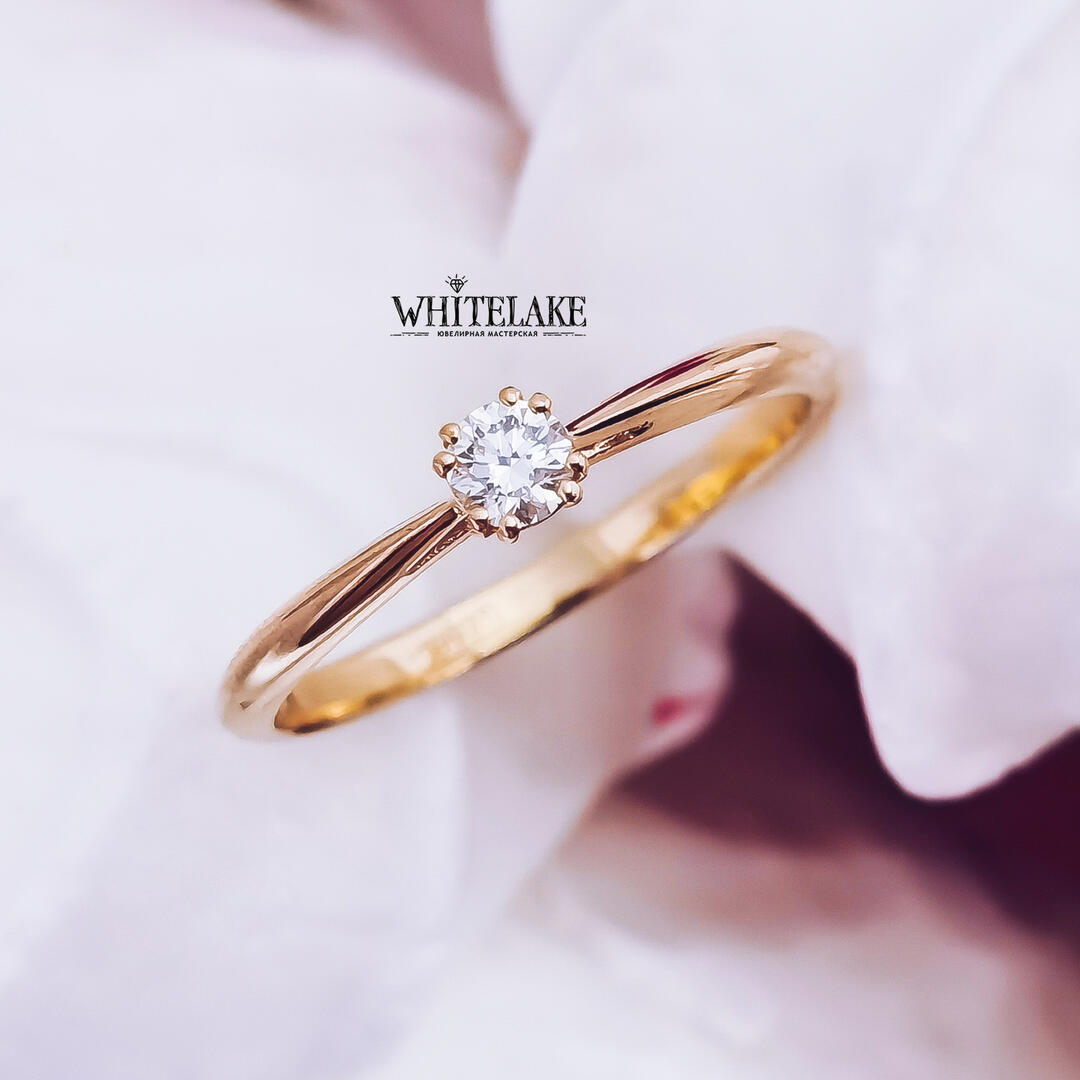 - Помолвочное кольцо из золота 750 пробы с бриллиантом