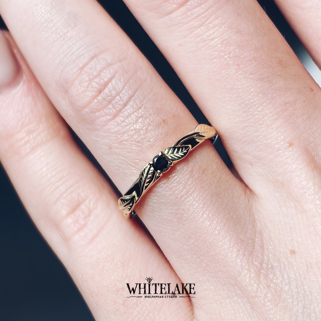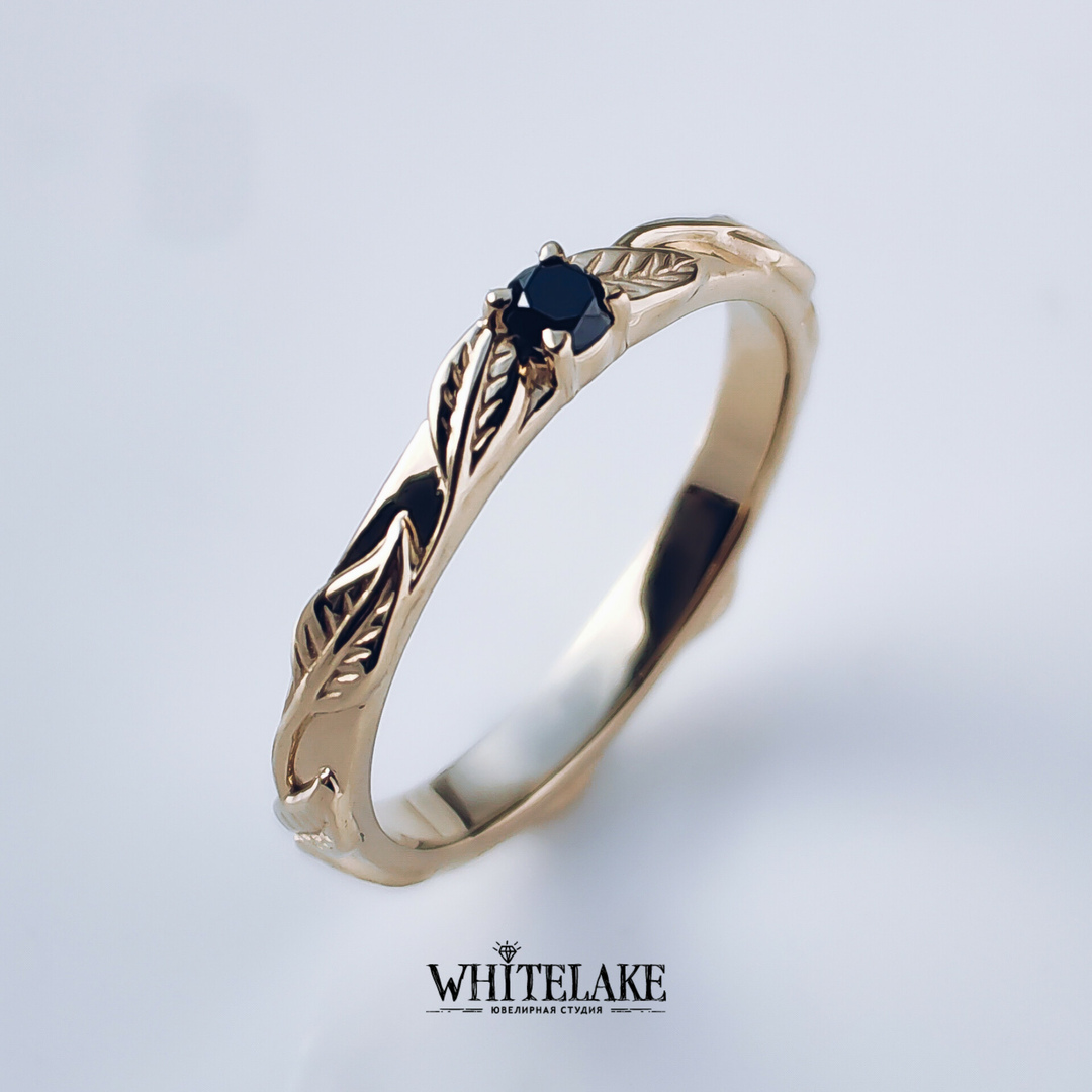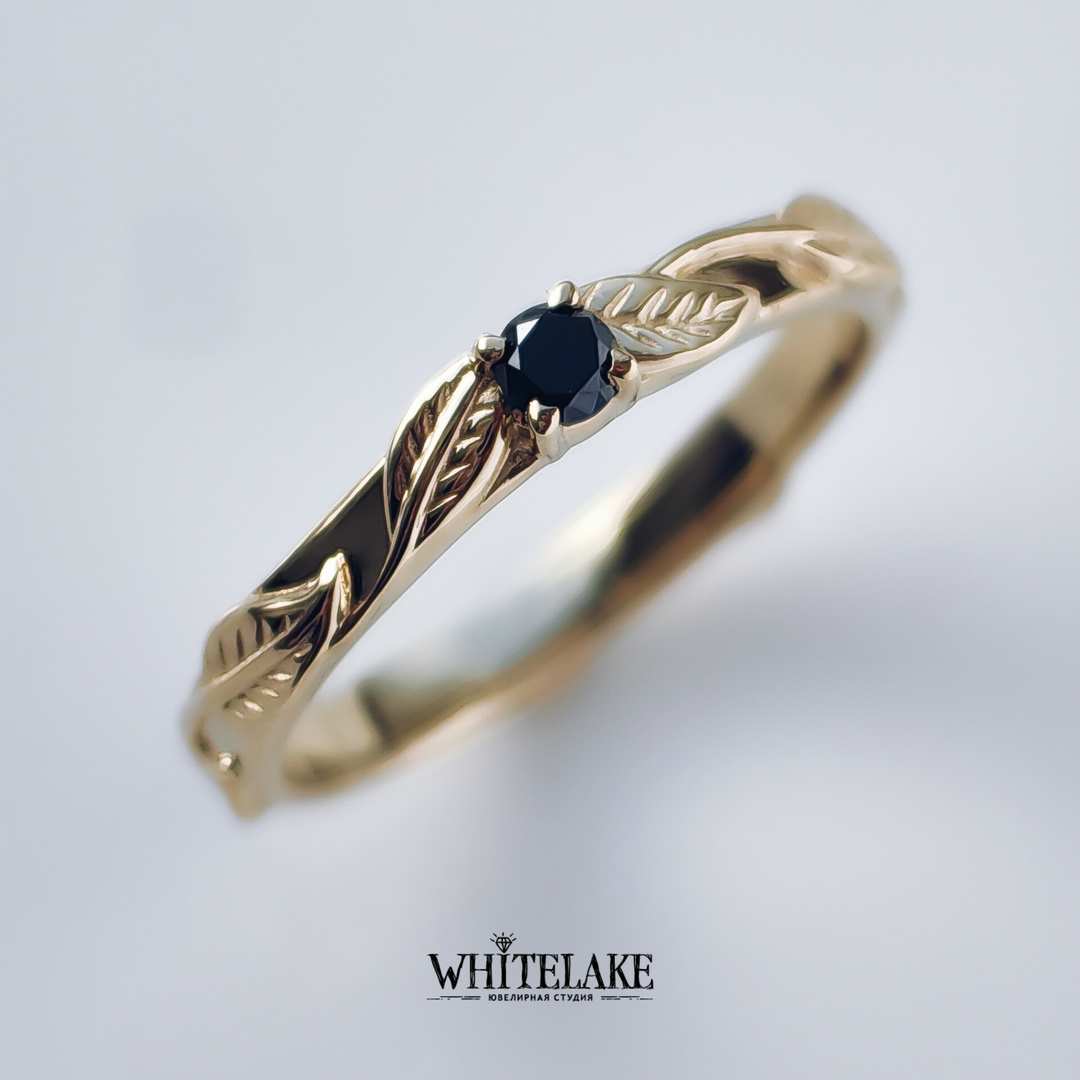 - Помолвочное кольцо с чёрным бриллиантом «Листочки»
