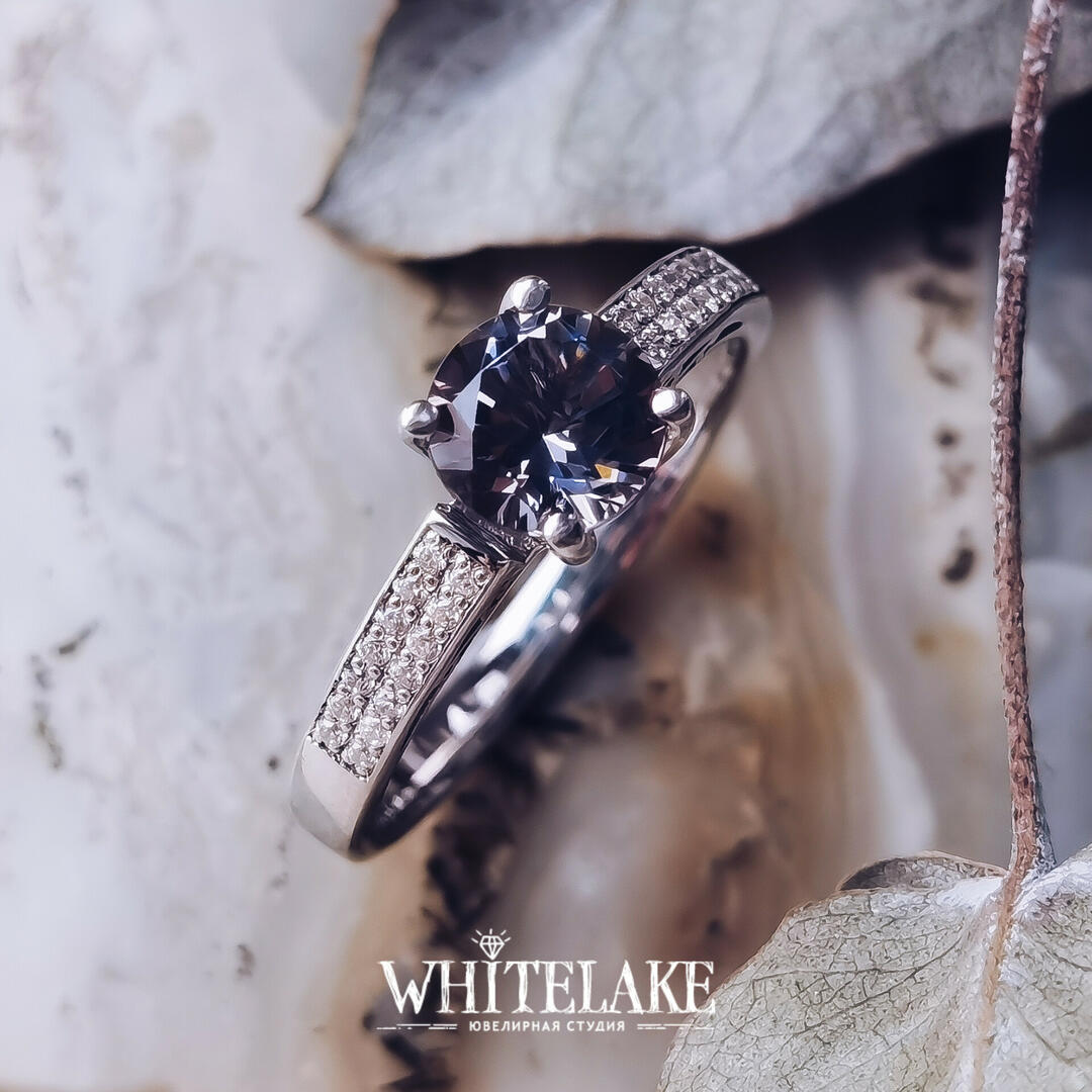 - Помолвочное кольцо с лабораторной серой шпинелью