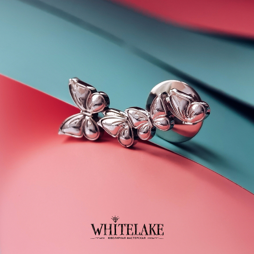 WHITELAKE Моно-серьга «Бабочки» Моно-серьга «Бабочки» на заказ. Изготовление уникальных ювелирных украшений из золота, серебра и платины с бриллиантами и другими драгоценными камнями. Заказывайте в ювелирной студии Whitelake с доставкой по России.