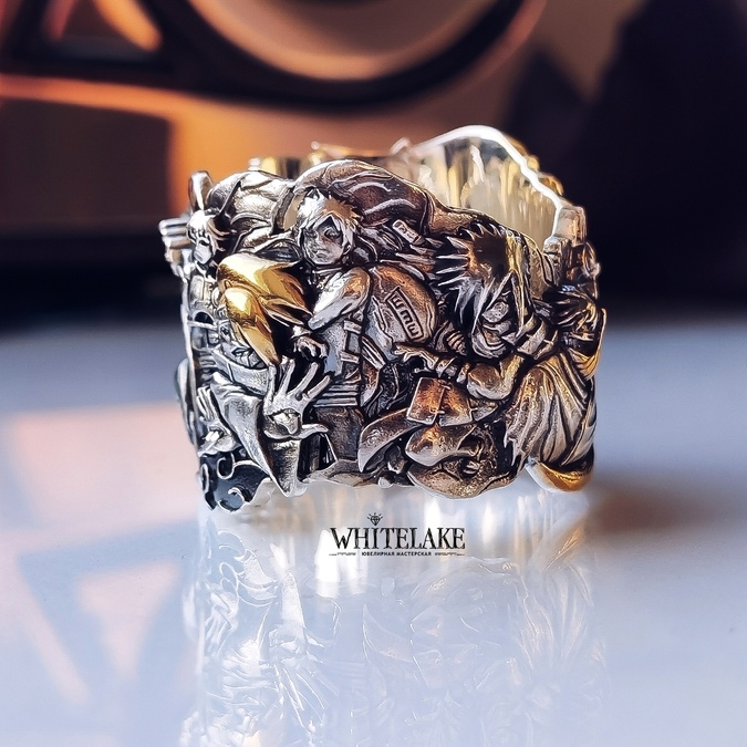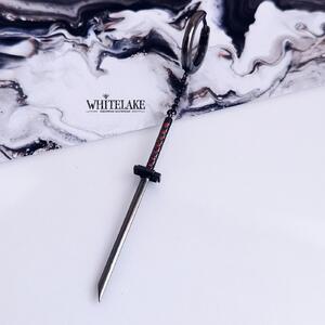 Зангецу – духовный меч Ичиго Куросаки, главного героя манги «Блич». Особой способностью его является искусное владение мечом, который он может, например, раскручивать над головой, держа за полоску ткани, и метать в противника. Именно это оружие мы и постарались воссоздать в серебре, сделав из него моносерьгу. Получилось очень похоже: темная рукоятка с красными вкраплениями, скошенное острие, холодный блеск лезвия – именно таким меч и предстает в «Бличе».
