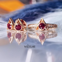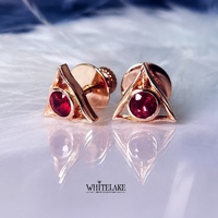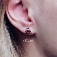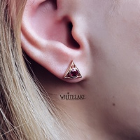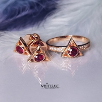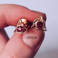 Кроваво-красные рубины замкнуты в символичные треугольники из красного золота. Прекрасные серьги сочетаются с кольцом Марволо Мракса, имитирующим родовую реликвию Певереллов.