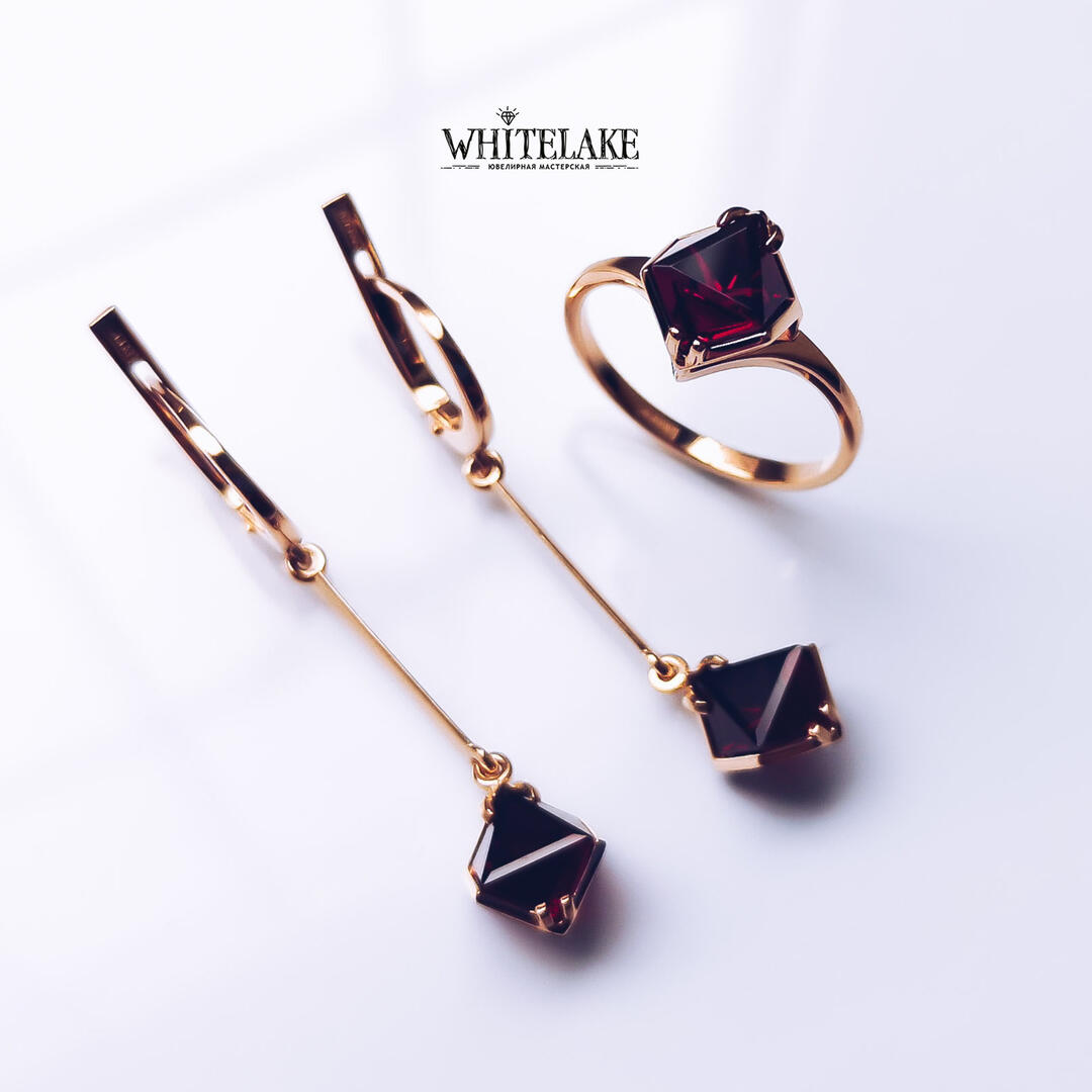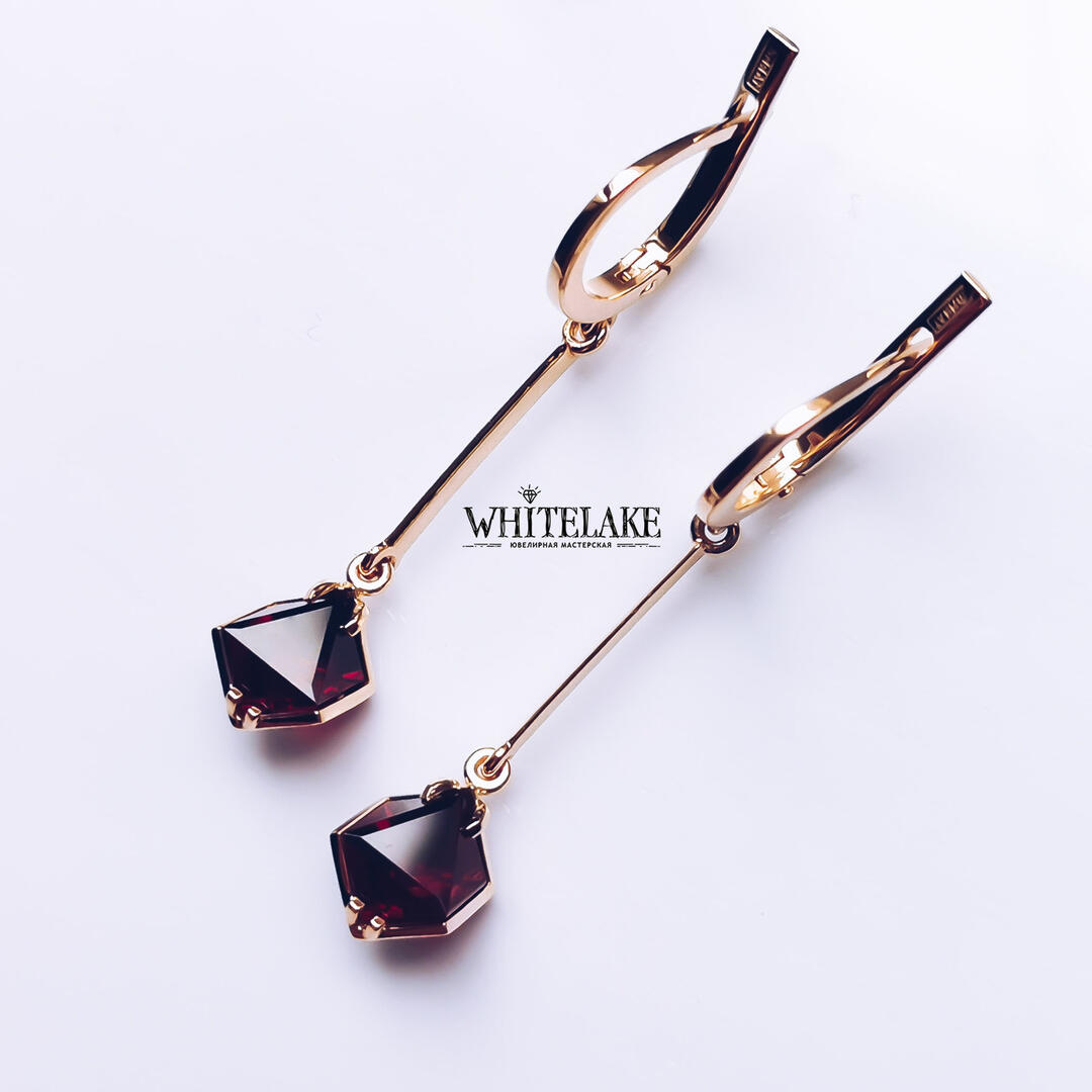 WHITELAKE Серьги из жёлтого золота с гранатами Серьги из жёлтого золота с гранатами на заказ. Изготовление уникальных ювелирных украшений из золота, серебра и платины с бриллиантами и другими драгоценными камнями. Заказывайте в ювелирной студии Whitelake с доставкой по России.
