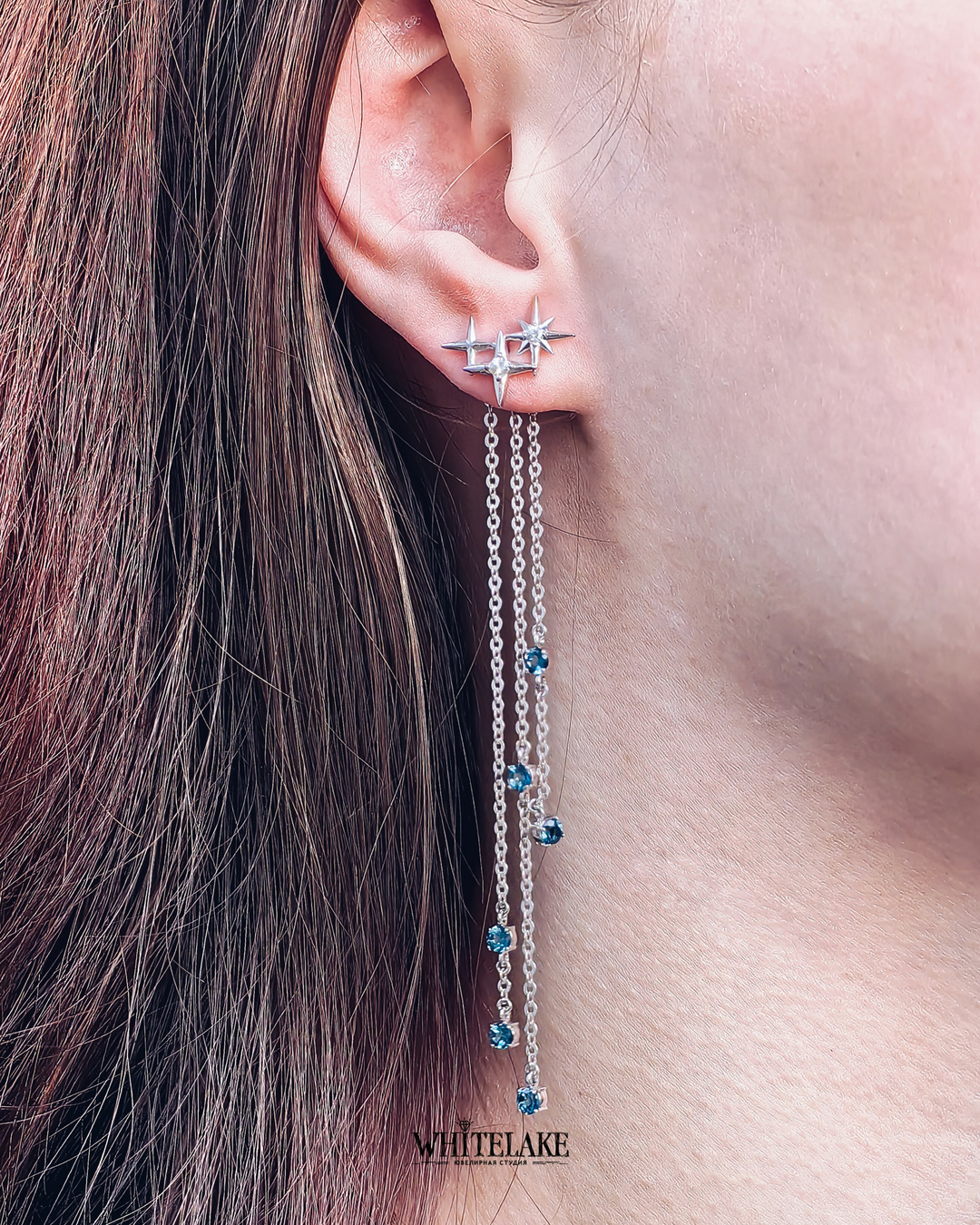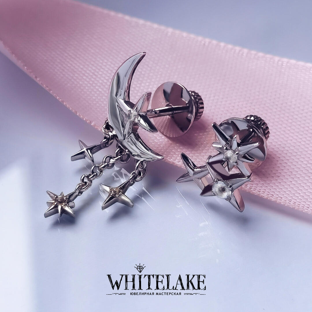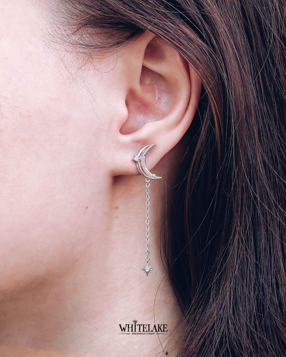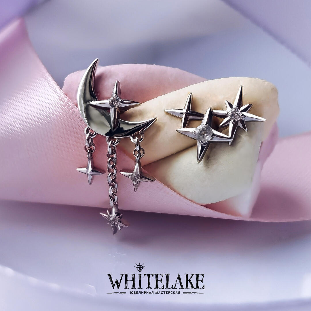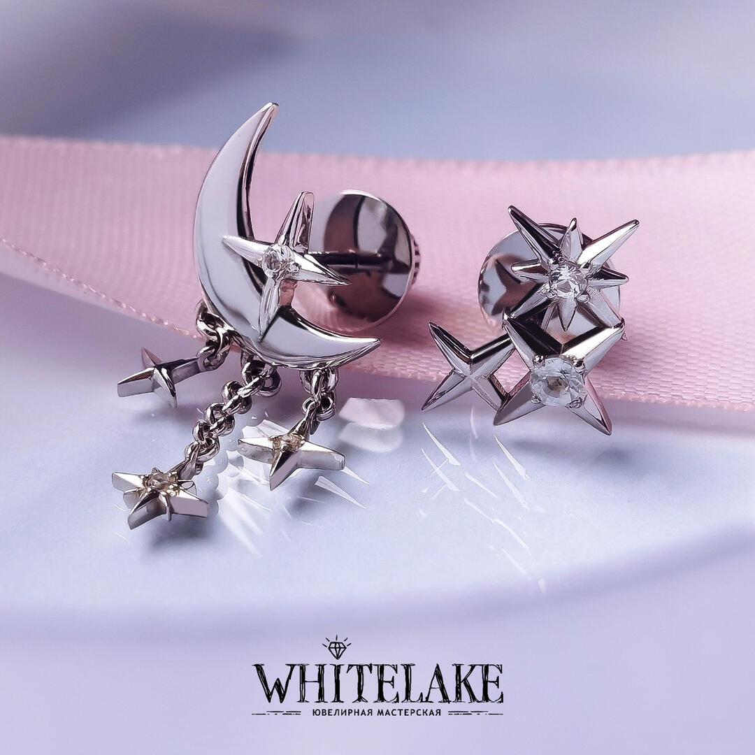 WHITELAKE Серьги на цепочках «Звёзды и месяц» Серьги на цепочках «Звёзды и месяц» на заказ. Изготовление уникальных ювелирных украшений из золота, серебра и платины с бриллиантами и другими драгоценными камнями. Заказывайте в ювелирной студии Whitelake с доставкой по России.