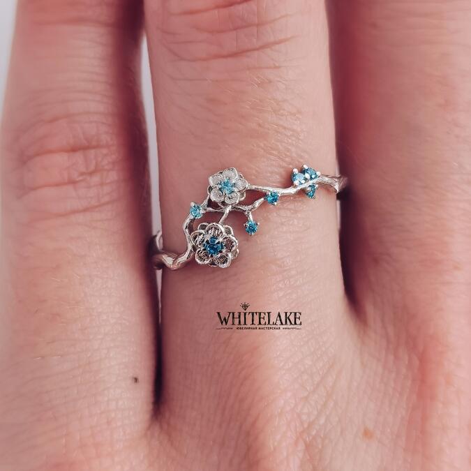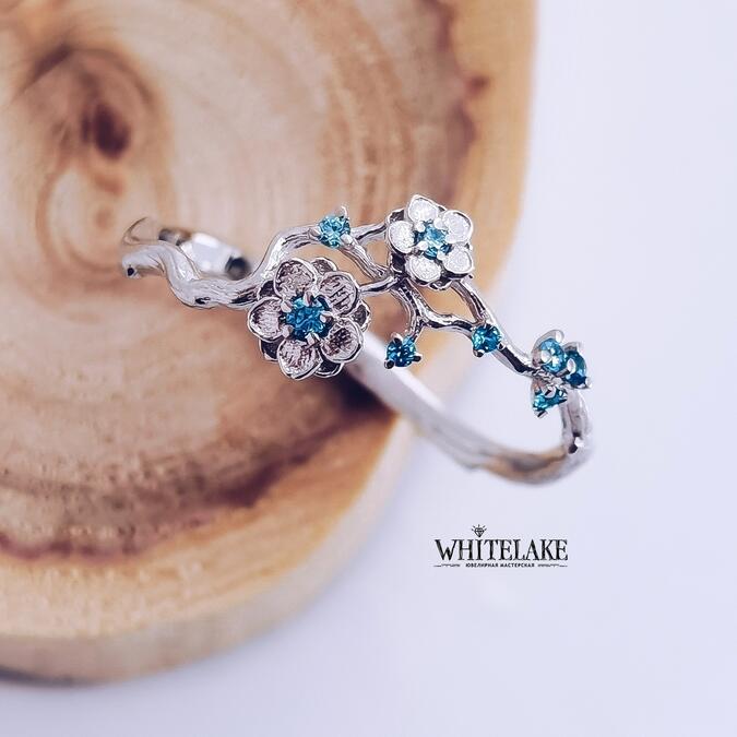 WHITELAKE Серьги с цветками сакуры и рубинами Серьги с цветками сакуры и рубинами на заказ. Изготовление уникальных ювелирных украшений из золота, серебра и платины с бриллиантами и другими драгоценными камнями. Заказывайте в ювелирной студии Whitelake с доставкой по России.