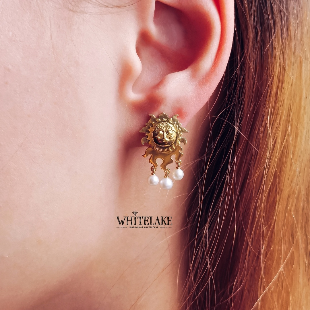 Только посмотрите на эти очаровательные лица солнца и месяца, словно прямиком из русских сказок! Каждая их черточка вырезана нашими ювелирами вручную, и это еще одна причина, почему такие серьги – действительно уникальное, особенное украшение. Мы обещаем: вы влюбитесь в них с первого взгляда, и они доставят вам массу удовольствия и принесут тонну комплиментов!