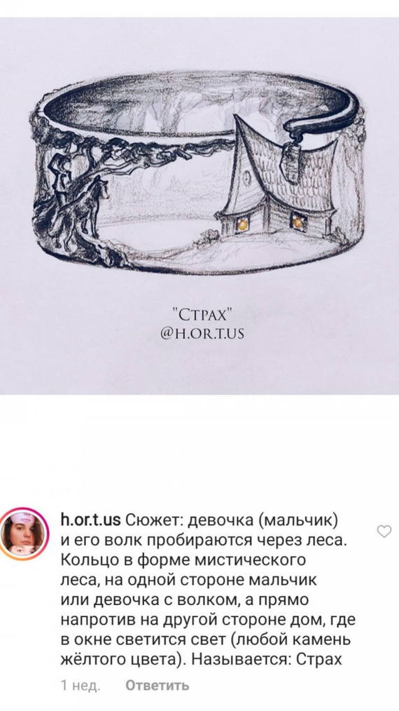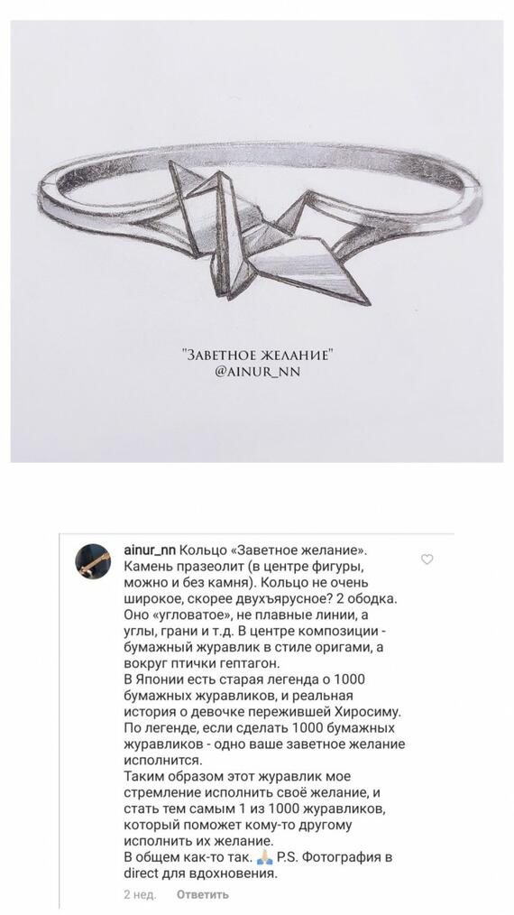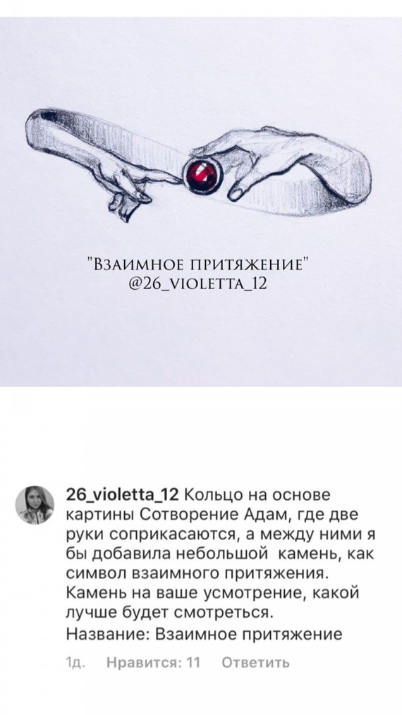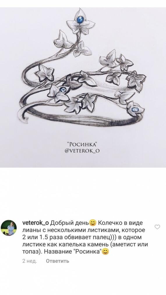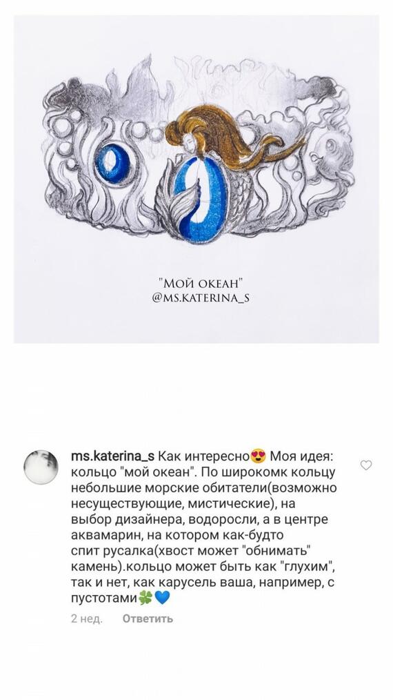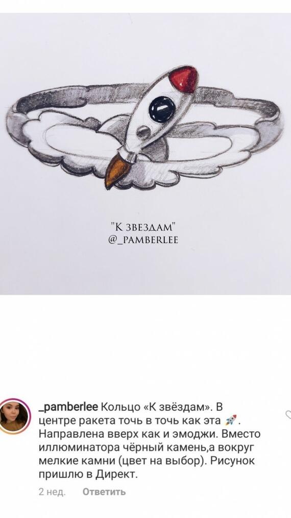 Здесь представлены идеи колец и ювелирных изделий от наших клиентов и эскизы, которые мы нарисовали на основании этих идей. Вы можете описать нам свою идею украшения в подобном формате, чтобы мы нарисовали эскиз и оценили изготовление изделия по Вашей идее.